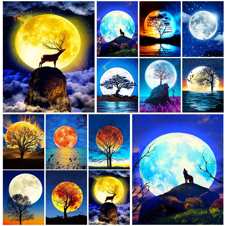 Набор для алмазной живописи 5D сделай сам, алмазная вышивка с изображением пейзажа, цветов, Луны, животных, волка, квадратов, кругов, морского побережья, мозаика