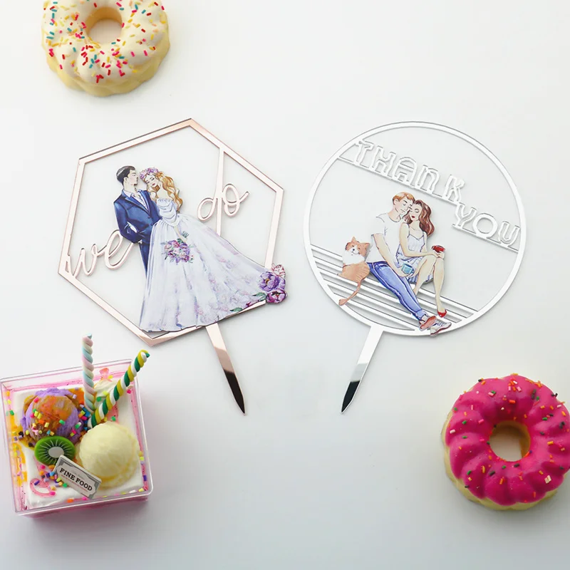 3D Топпер для свадебного торта для невесты и жениха Mrs.Mr, розовое золото, акриловые топперы для торта на День святого Валентина
