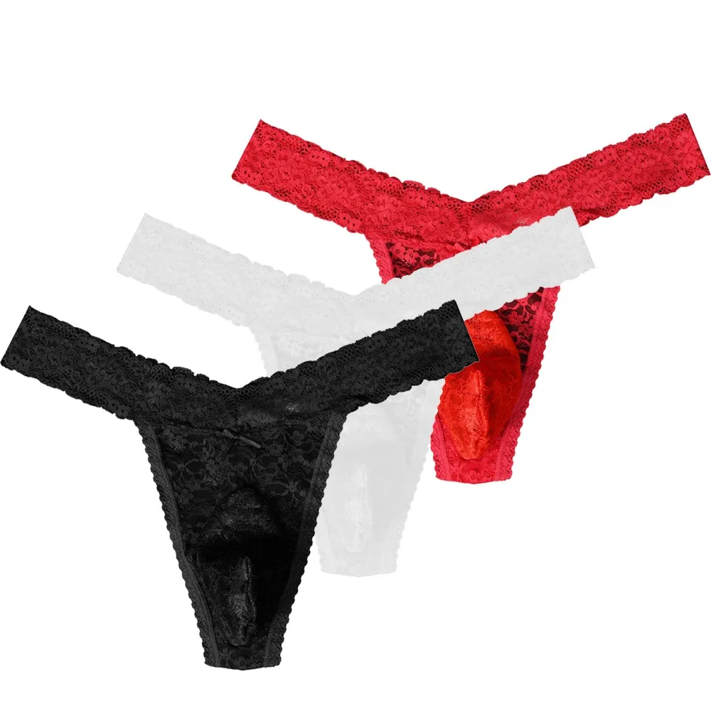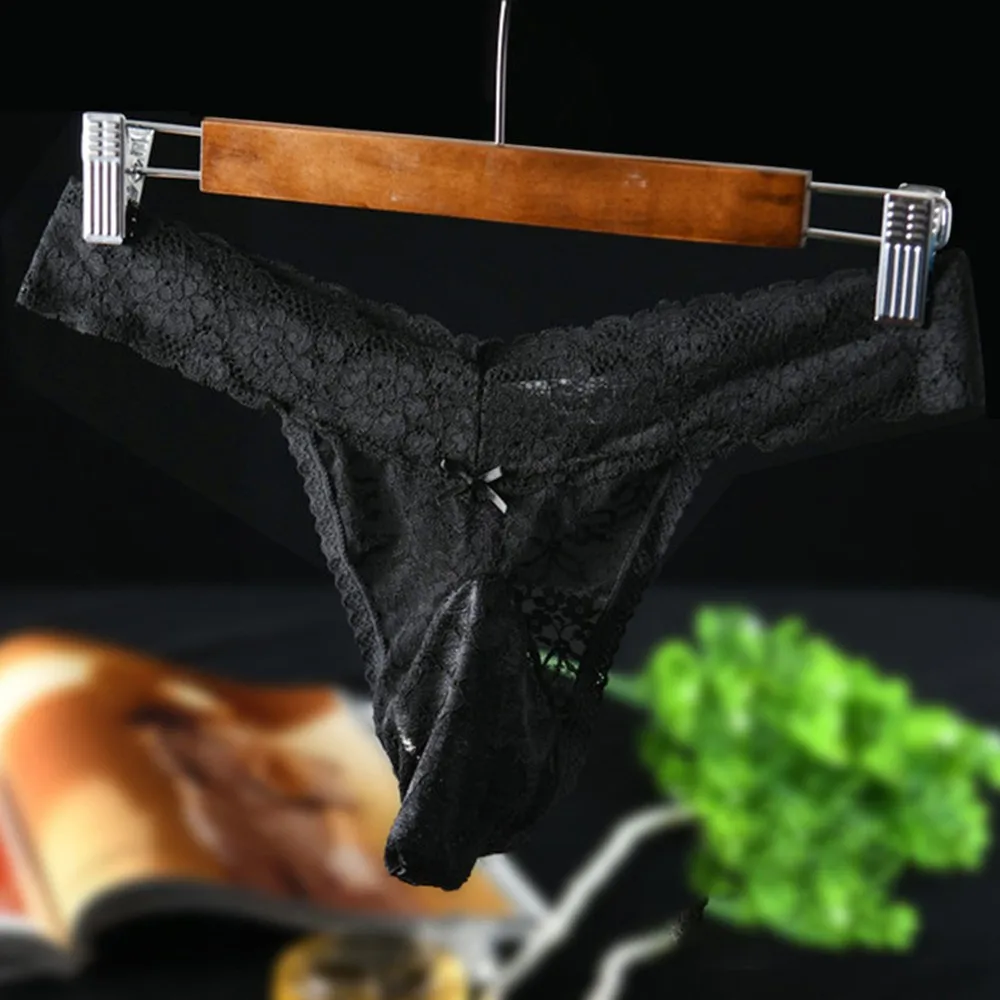 Трусы-стринги мужские кружевные, дышащее удобное пикантное нижнее белье, Экзотические трусы, одежда для геев, большие размеры