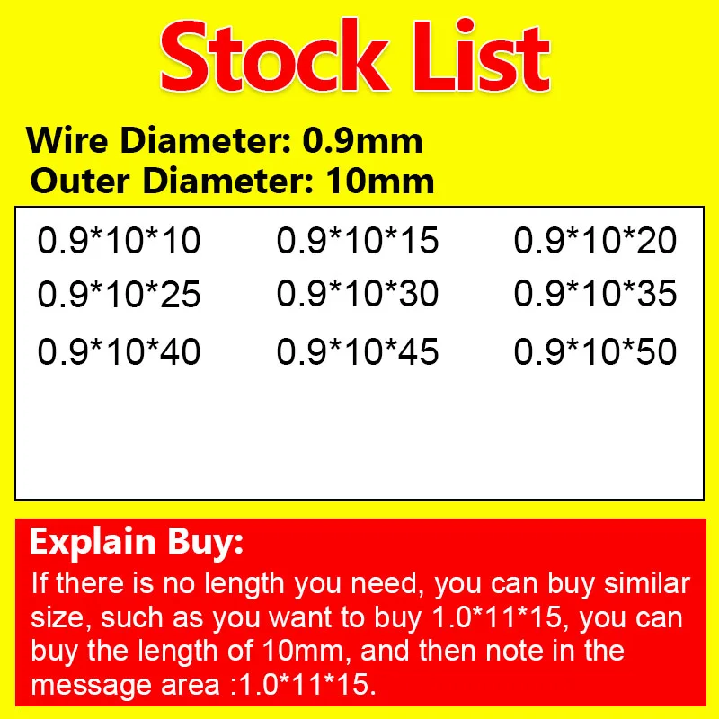 Например: 1,0*11*10 м (диаметр проволоки 1,0 мм, наружный диаметр 11 мм, длина составляет 10 мм.)