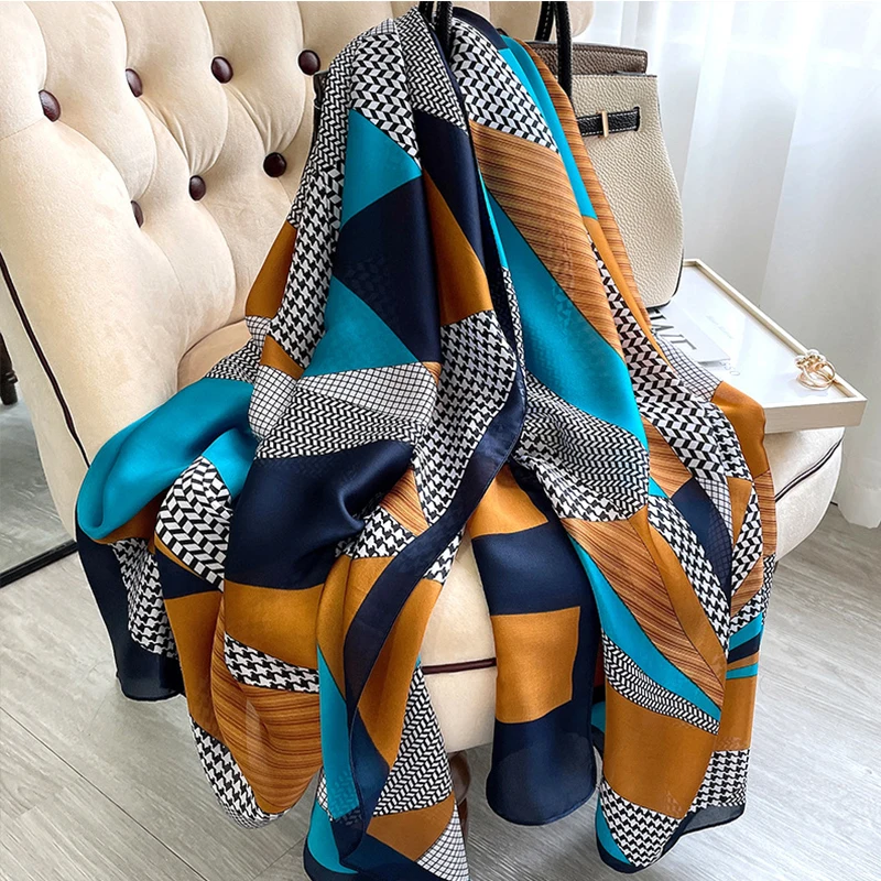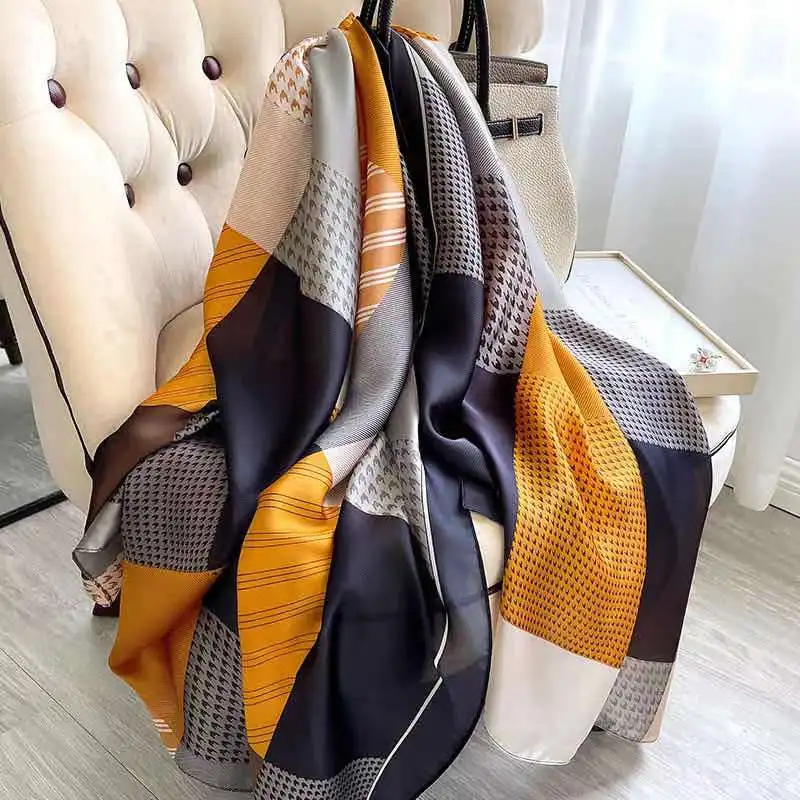 2021 роскошный платок x 90 см летнее солнцезащитное пляжное полотенце популярные шелковые шарфы с сетчатым принтом женская модная Пылезащитная шаль