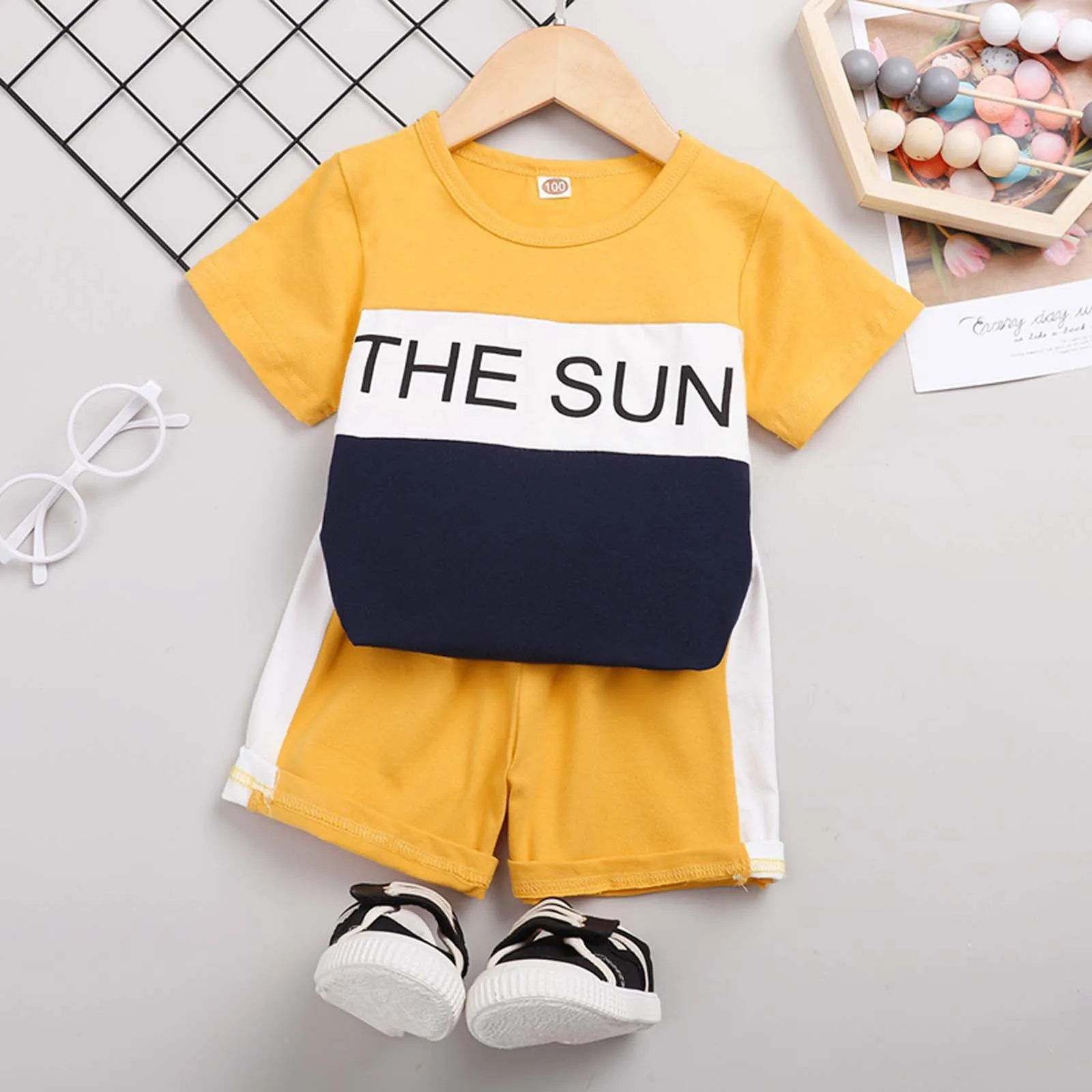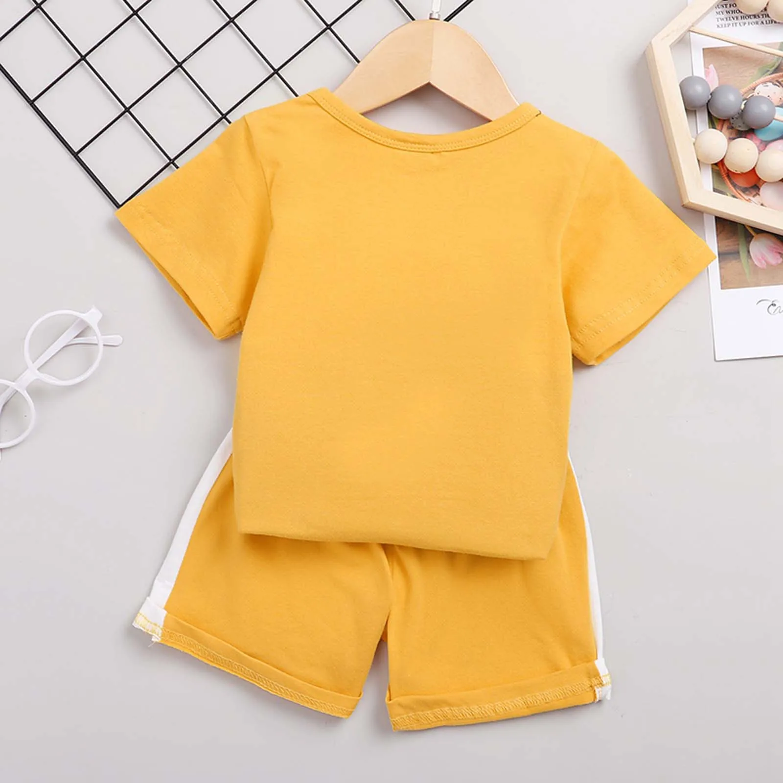 Спортивный костюм для маленьких мальчиков, шорты с буквенным принтом и коротким рукавом, комплект одежды для детей, комплект из 2 предметов