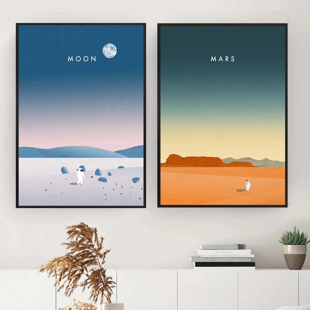 Постер и печать на холсте, рисунок астронавта, Луны, Марса, Вселенная, космос, стены, Мультяшные картины, Декор для дома, гостиной icon star icon star icon star icon star icon star