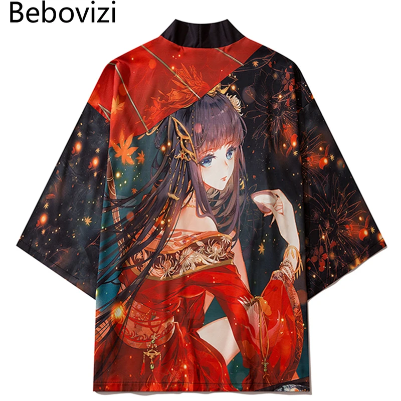 Традиционный кардиган, косплей, комплект хаори, азиатская одежда, японское аниме, красота, принт, брюки-кимоно, костюм, Пляжная юката, женская рубашка