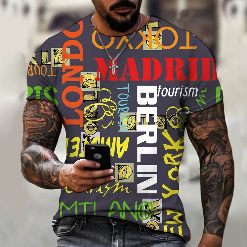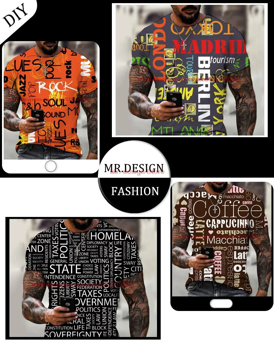 Мужская футболка с коротким рукавом, модная футболка с 3D-принтом в виде букв и символов граффити, новейший дизайн 2021