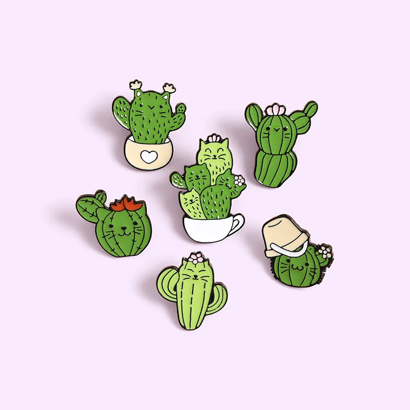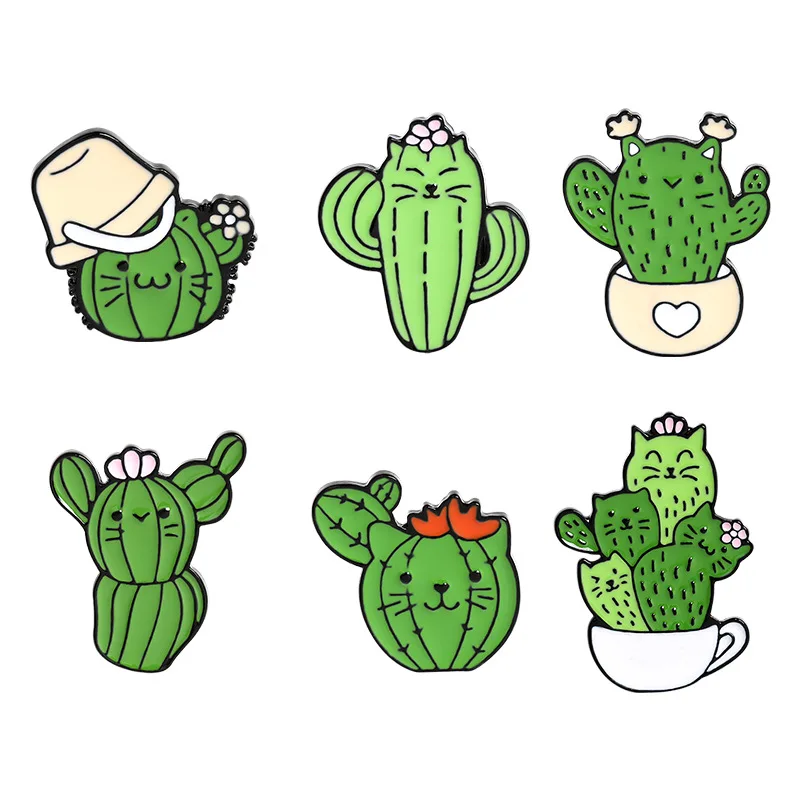 Забавная брошь в виде животного, котенок, лицо, брошь кактус, растение в горшке, брошь кактус, Милая брошь кактус, Детская Брошь кактус