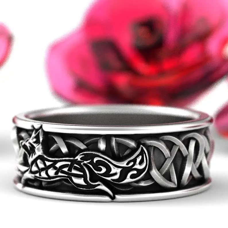 Кольца с кельтским волком мужские, винтажные кольца с полым цветочн...