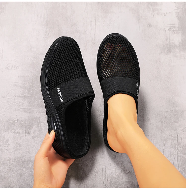 Женские сетчатые туфли на плоской подошве, повседневные шлепанцы бе...