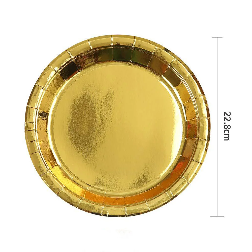Одноразовая посуда для вечевечерние 10 человек, подходящее количество, из золотой бумаги, для украшения торта, дня рождения, вечеринки