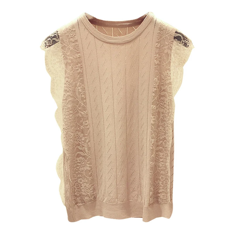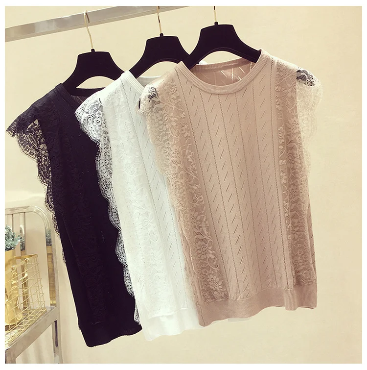 Женская летняя одежда, топ, футболка, жилет, новый кружевной вязаный жилет, женская футболка без рукавов из вискозы