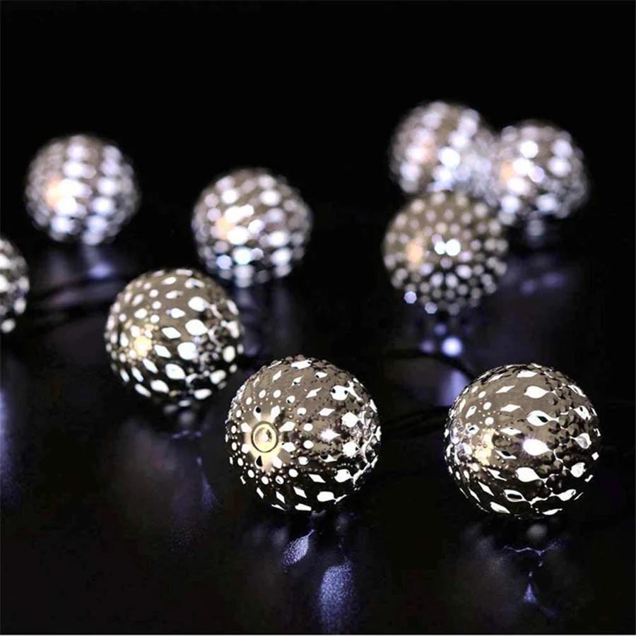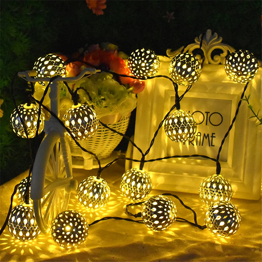 Новинка, светодиодная гирлянда из железа на солнечной батарее с вырезами в марокканских шарах, Рождественская сказочная гирлянда, огни для вечерние ринки, свадьбы, украшение для сада