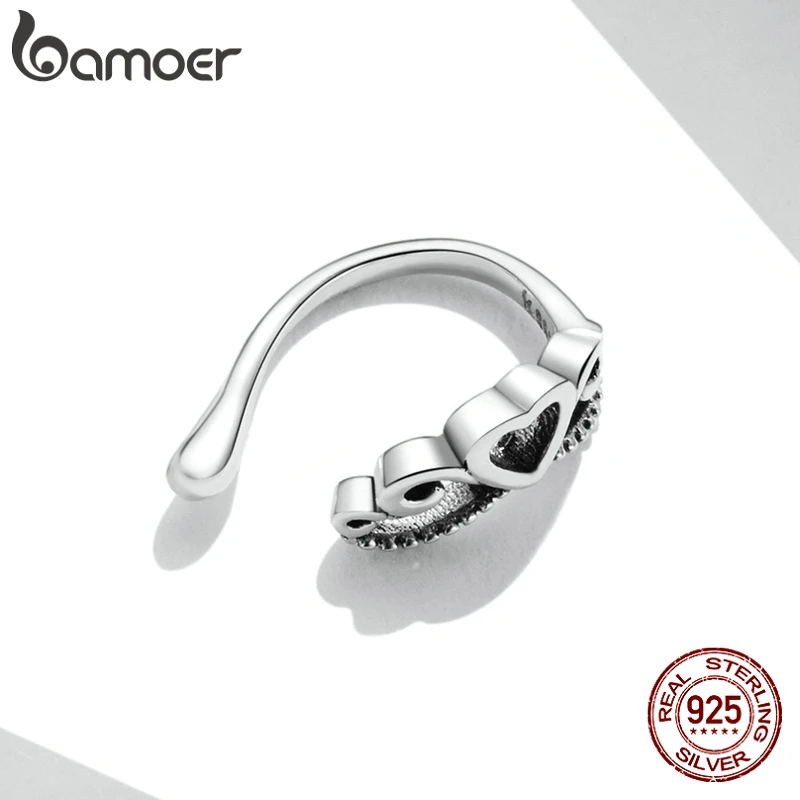 Женский моноушной зажим Bamoer, классический винтажный зажим в форме сердца из стерлингового серебра 925 пробы, элегантные вечерние ювелирные изделия, 1 штука