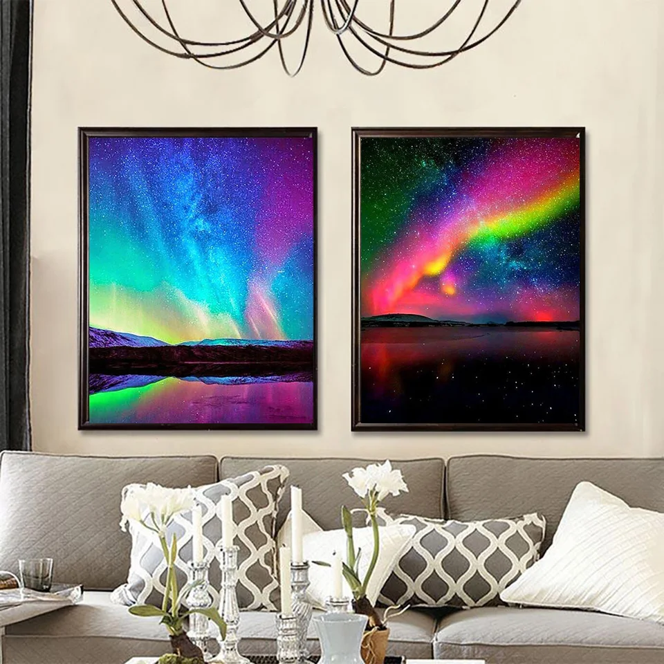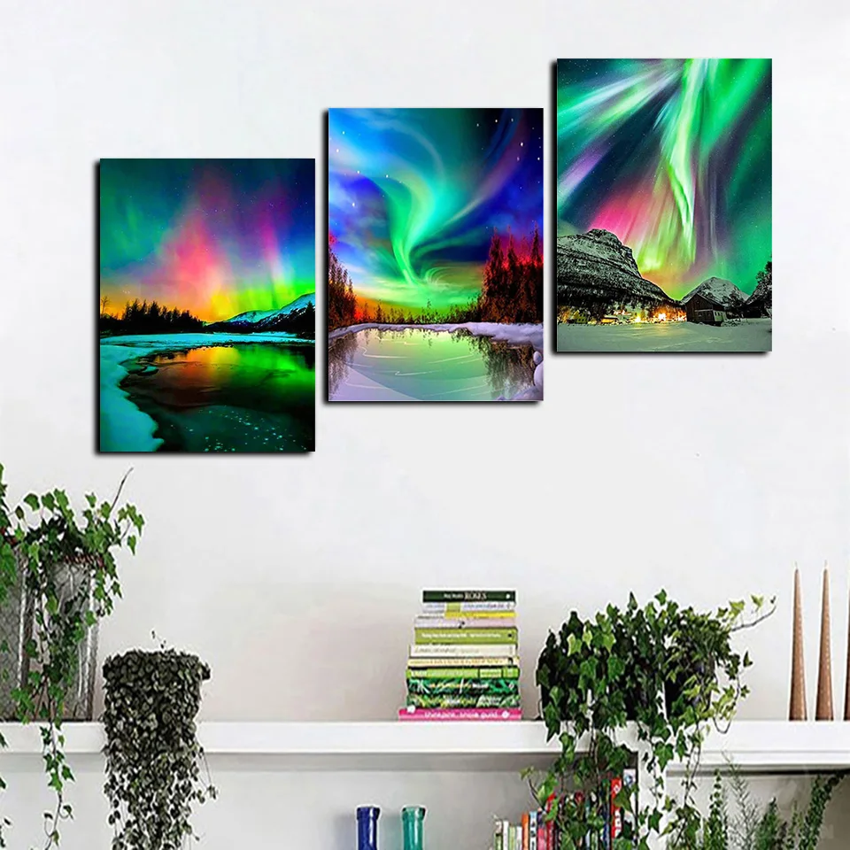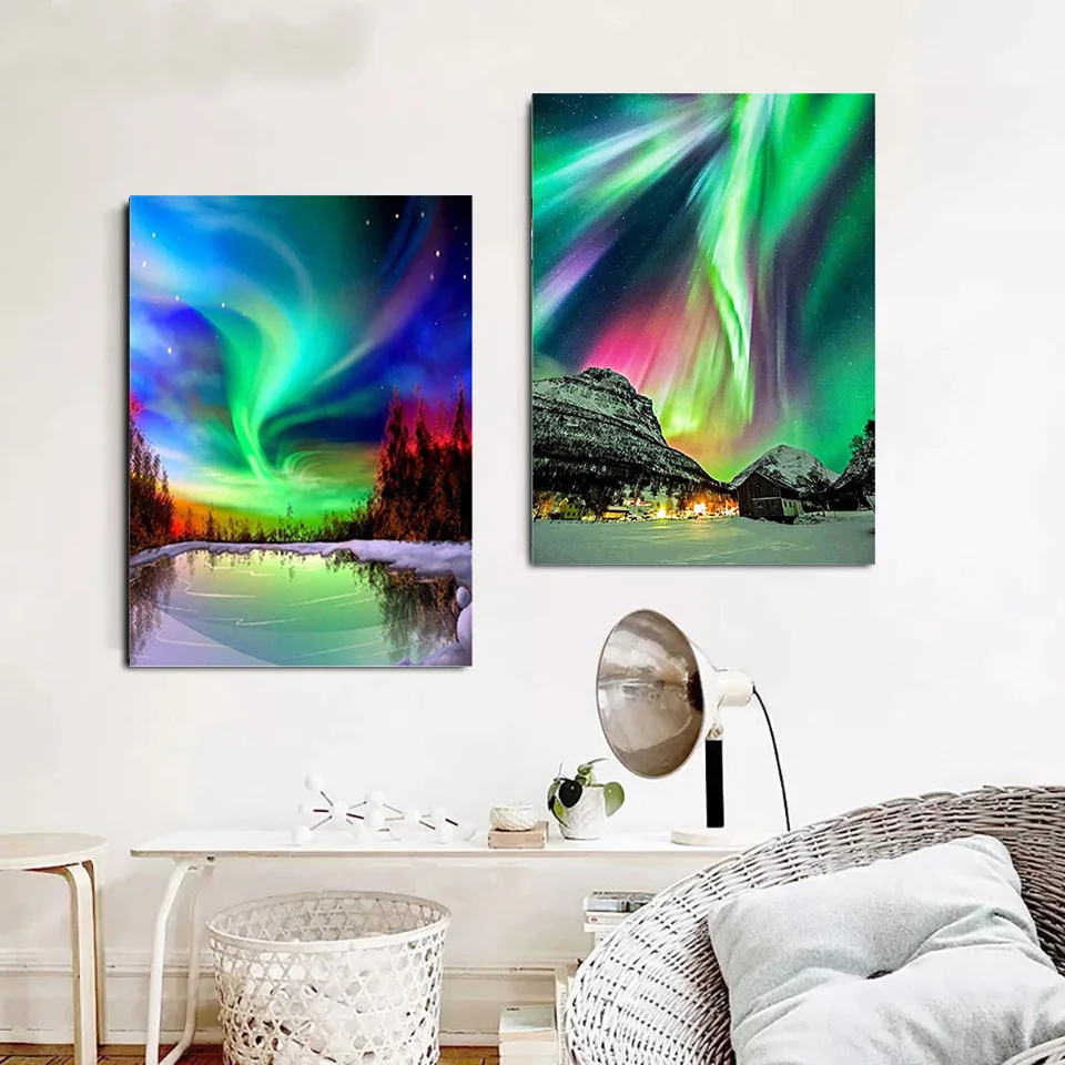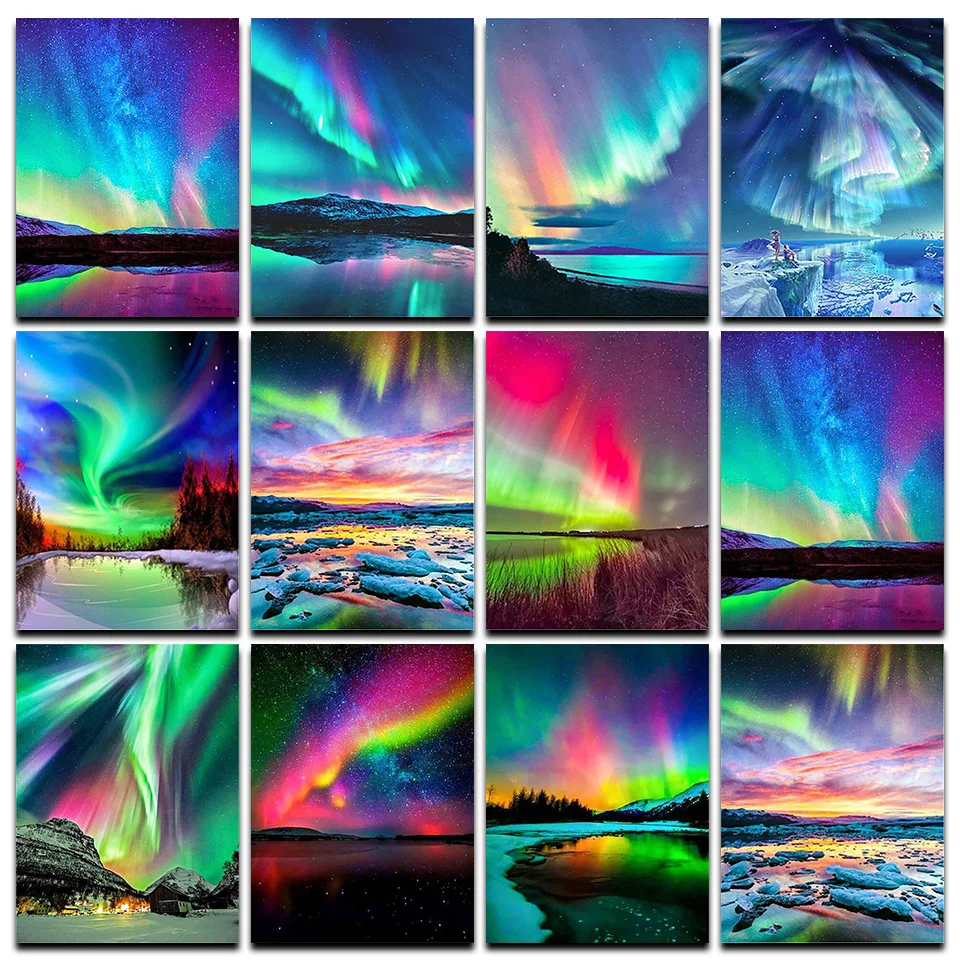 Набор для алмазной вышивки 5D "Зимняя Аврора", квадратный круглый пейзаж, пейзаж, картина, выложенная алмазами дюйма