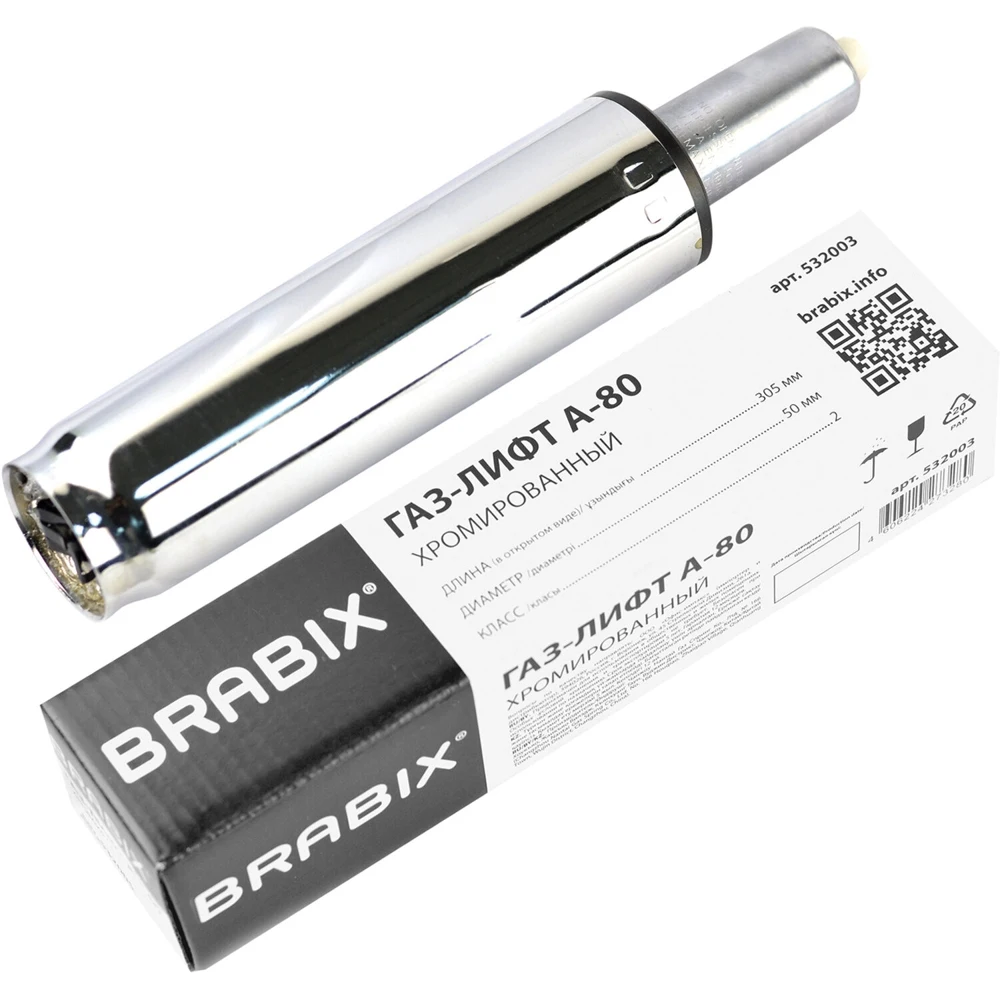 Газ-лифт BRABIX A-80 суперкороткий, ХРОМ, длина в открытом виде 305 мм, d50 мм, класс 2, 532003