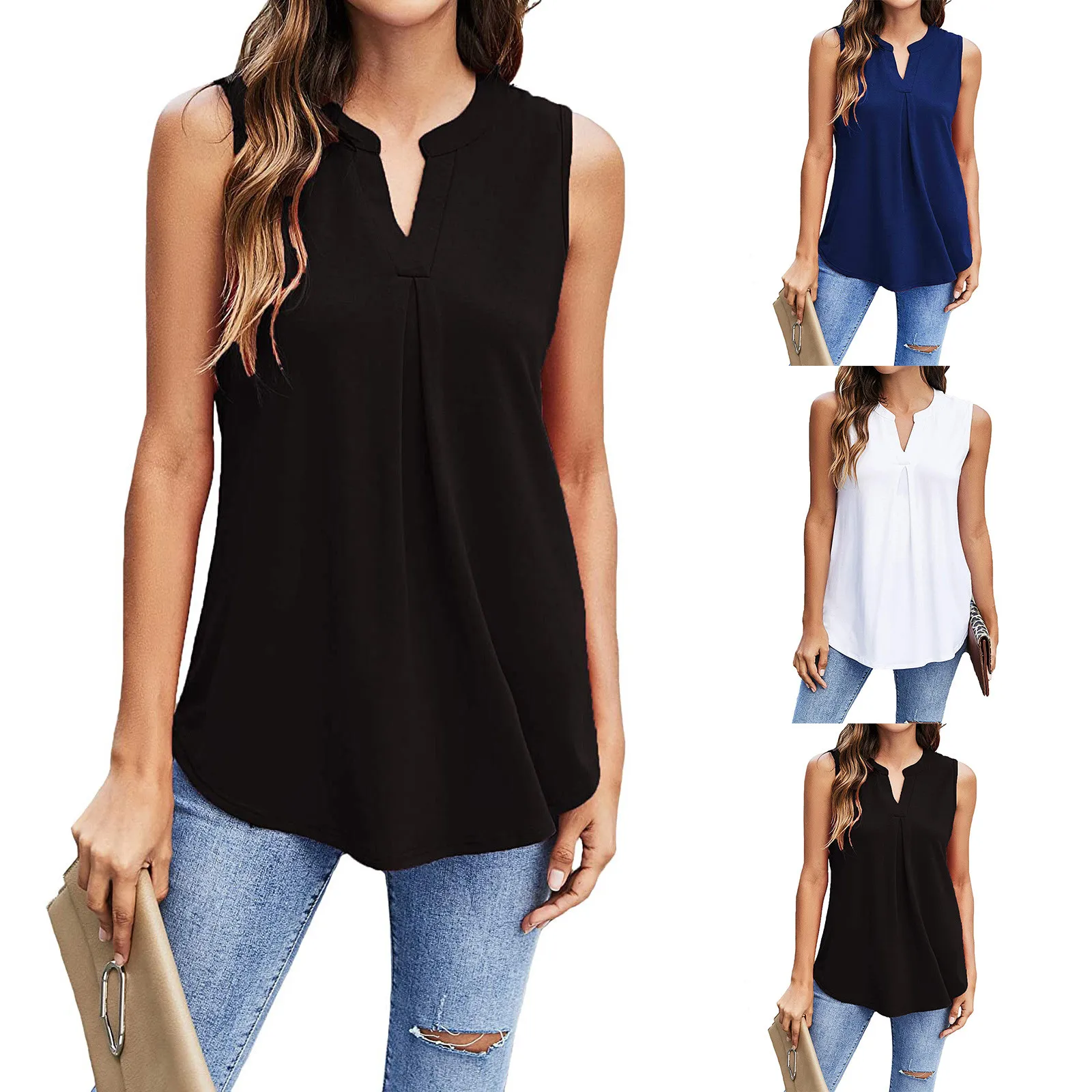 2021 элегантная повседневная женская рубашка, новый стиль, Повседневная облегающая длинная майка без рукавов с V-образным вырезом, летние праздничные майки, женская блуза