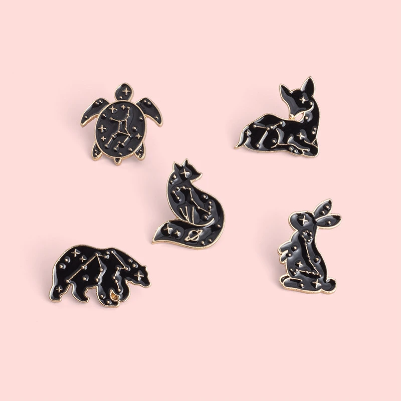 Новые аксессуары, панк стиль, брошь в виде животного, черная брошь Лисичка, креативная мультяшная брошь в виде кролика, черная брошь в виде черепахи, черная брошка в виде оленя