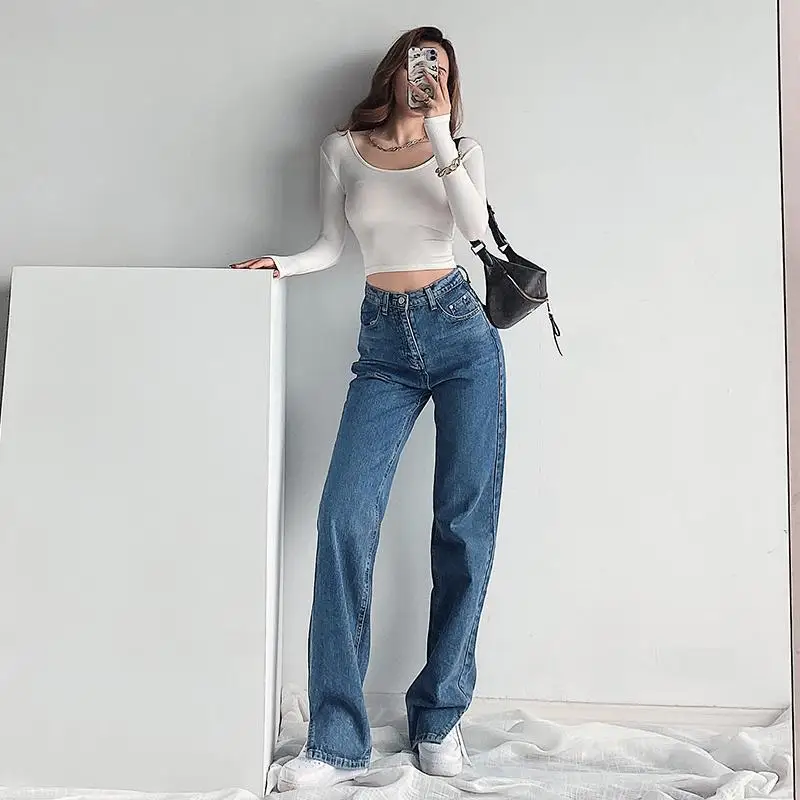 Женские джинсы с высокой талией, прямые, зауженные, свободные, для осени и зимы