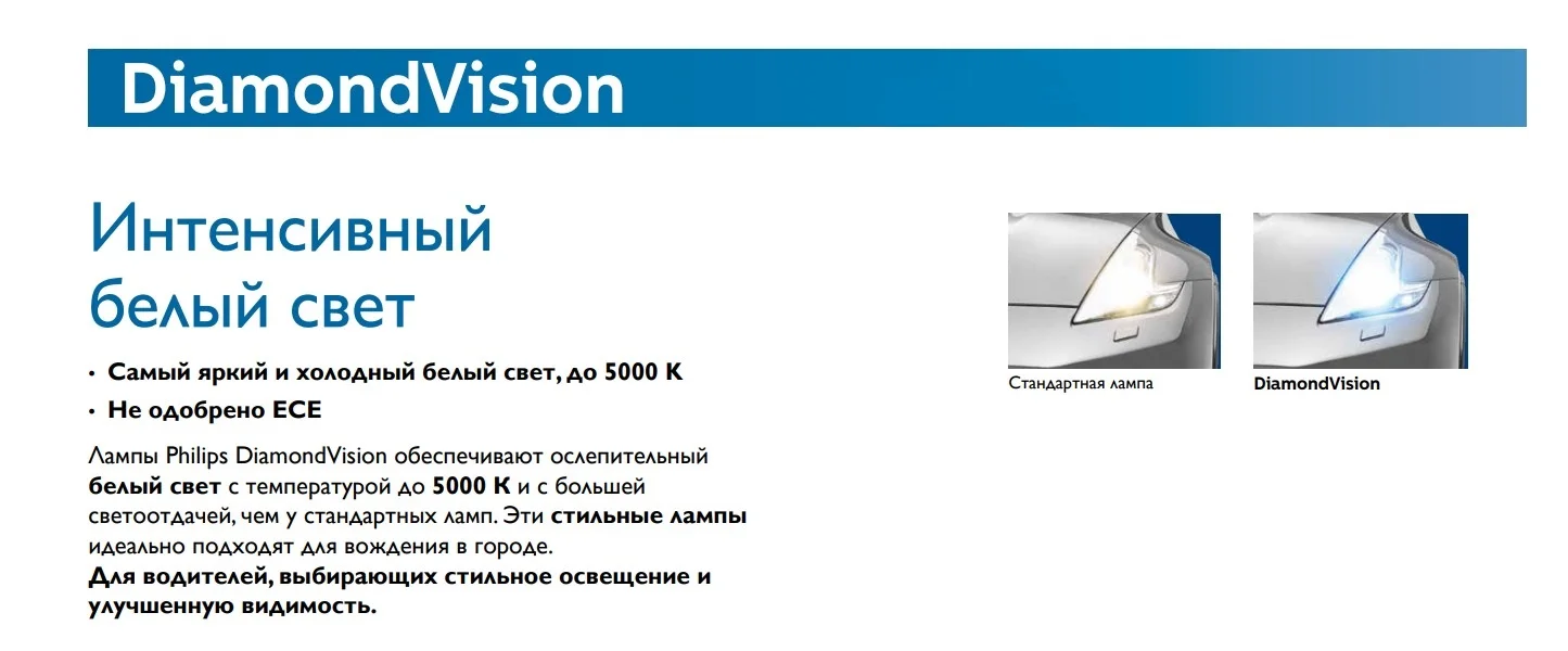 Галогенная лампа H7 PHILIPS DiamondVision 12V-55W блистер (1шт.) 12972DVB1