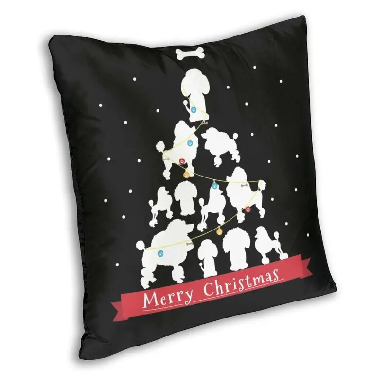 Наволочка для диванной подушки с изображением пуделя рождественской елки, 40x40