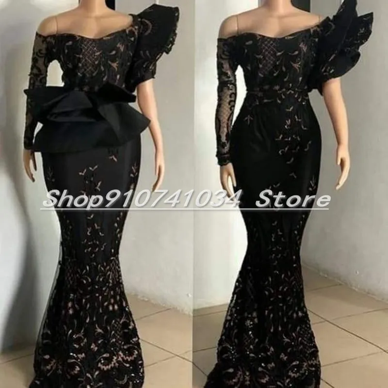 Женское вечернее платье-русалка, черное платье с длинным рукавом и аппликацией, для выпускного вечера, 2021