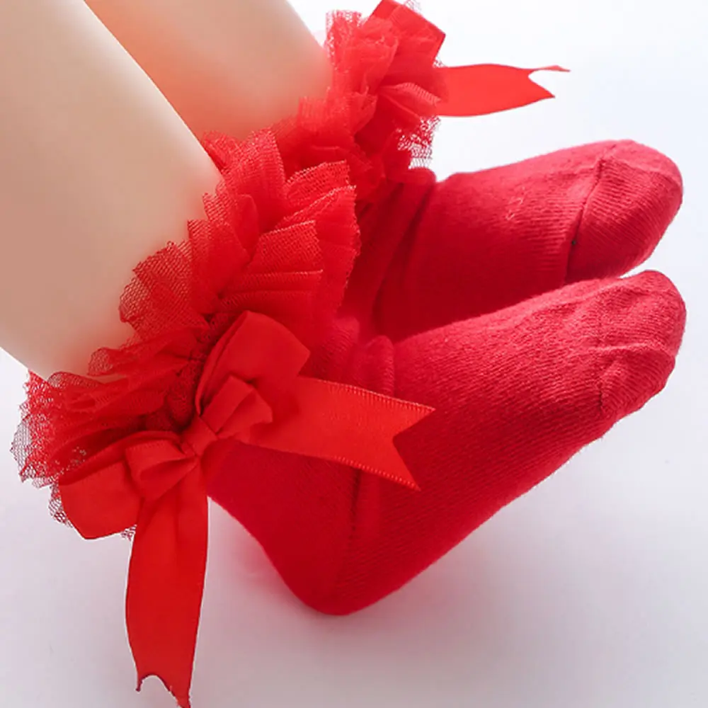 Детские носки для малышей; Короткие носки принцессы с кружевом и цветочным рисунком для девочек; Хлопковые носки с оборками и оборками