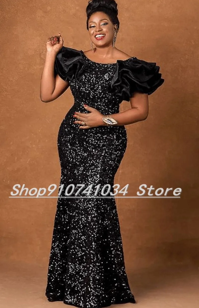 Черные вечерние платья с блестками, платья-русалки для выпускного вечера, Свадебная Гостевая одежда, платья с рукавом-крылышком, 2021