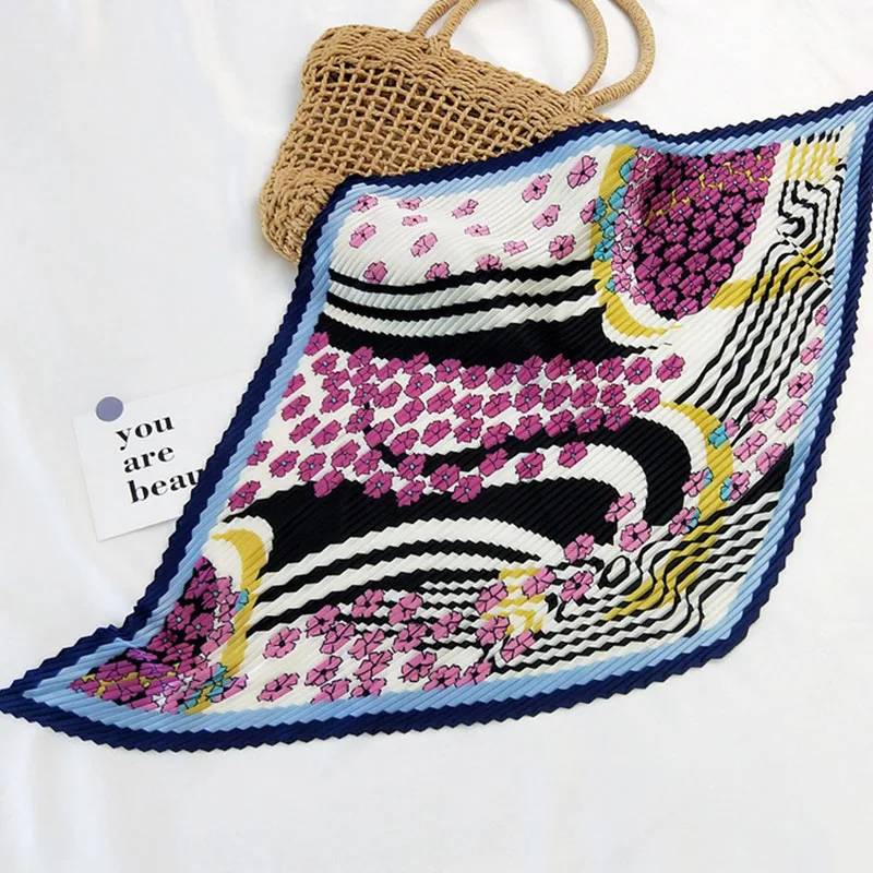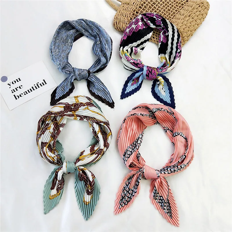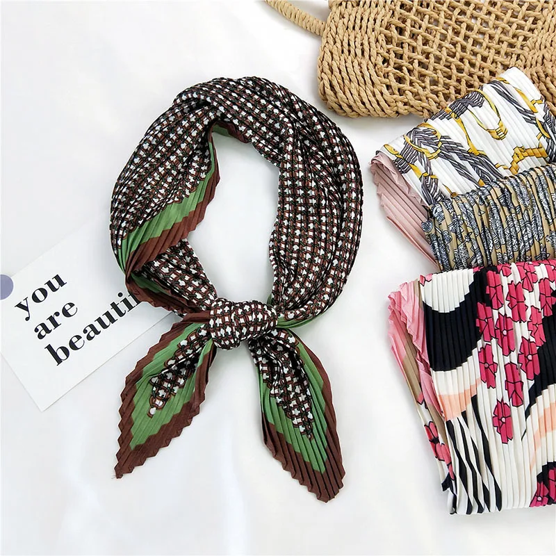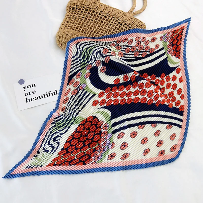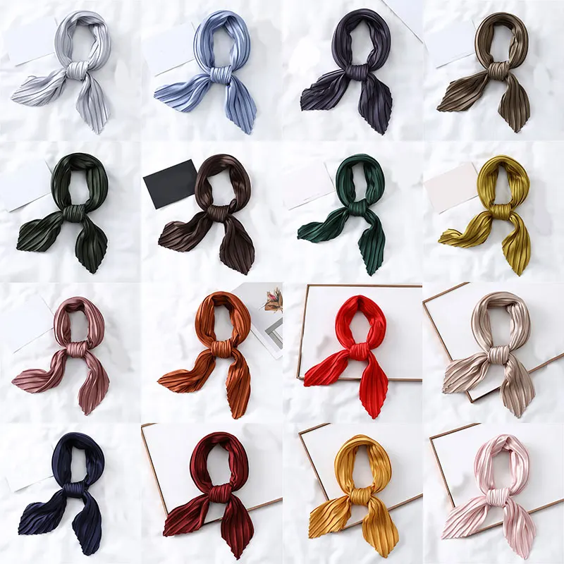 Шарф квадратный Женский, Модный дизайнерский Шелковый плиссированный шарф различных цветов, в подарок