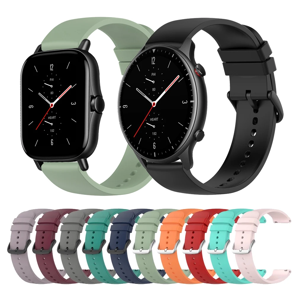 Силиконовый спортивный ремешок 20 мм, 22 мм, для Huami Amazfit GTR 2, ремешок для Amazfit Bip U GTS2 Mini GTR 42 мм, 47 мм, браслет, Ремешки для наручных часов