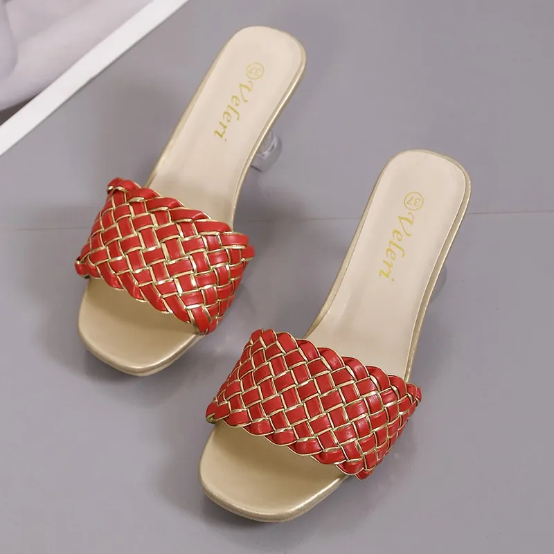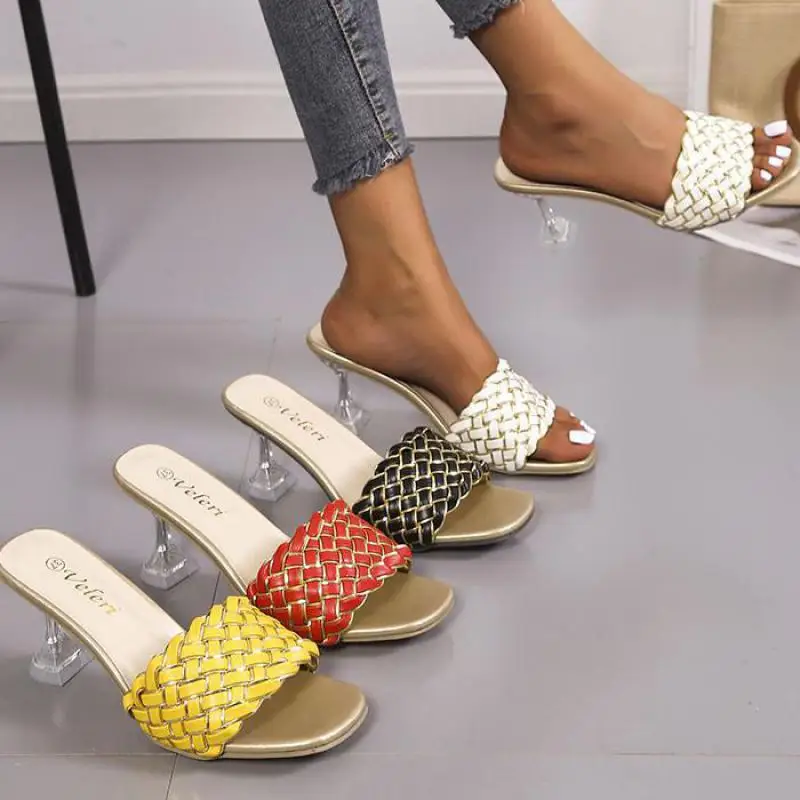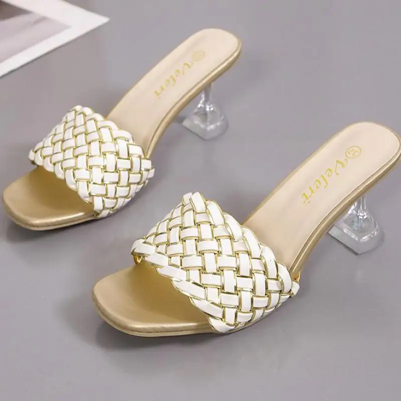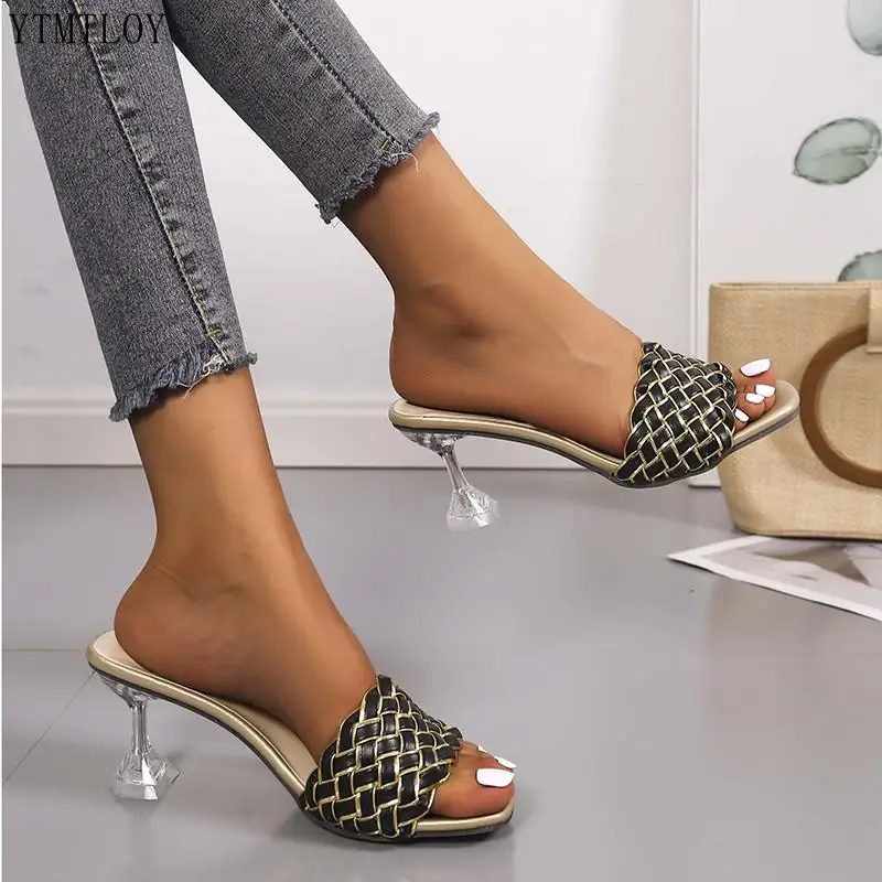 Женские сетчатые шлепанцы, прозрачные сандалии на высоком каблуке, ...