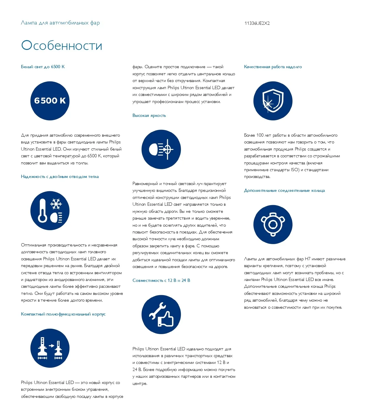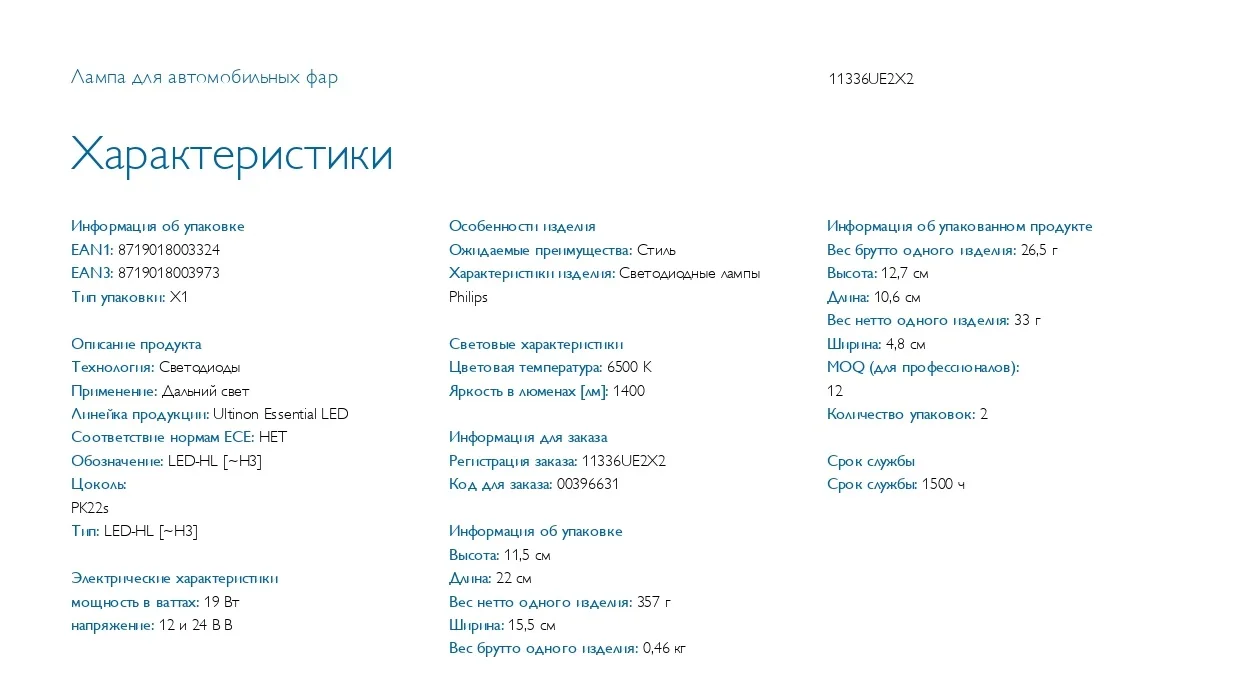 Светодиодная лампа H3 PHILIPS LED Ultinon Essential LED1224В-22Вт 6500K 11336UE2X2 (уп.2 шт.)