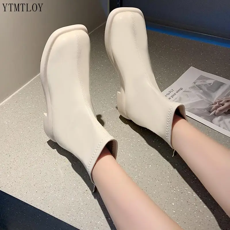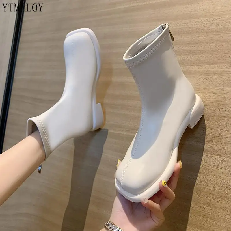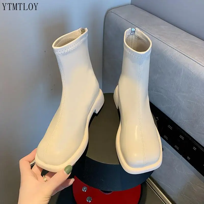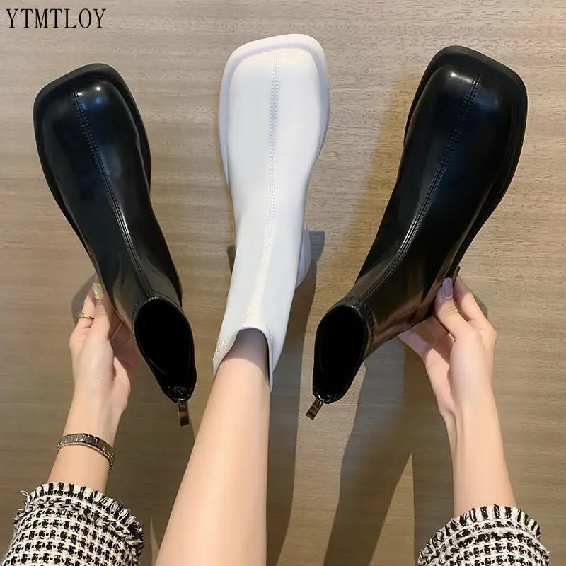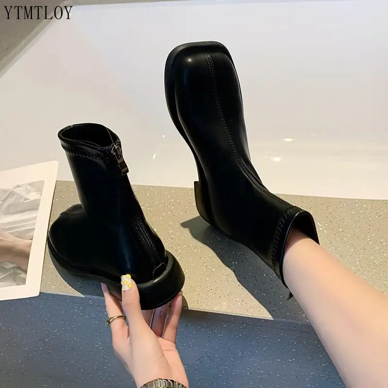 Женские осенние ботинки на молнии сзади, роскошная дизайнерская резиновая модная женская обувь 2021 Ytmtloy с квадратным носком, женские ботинки челси