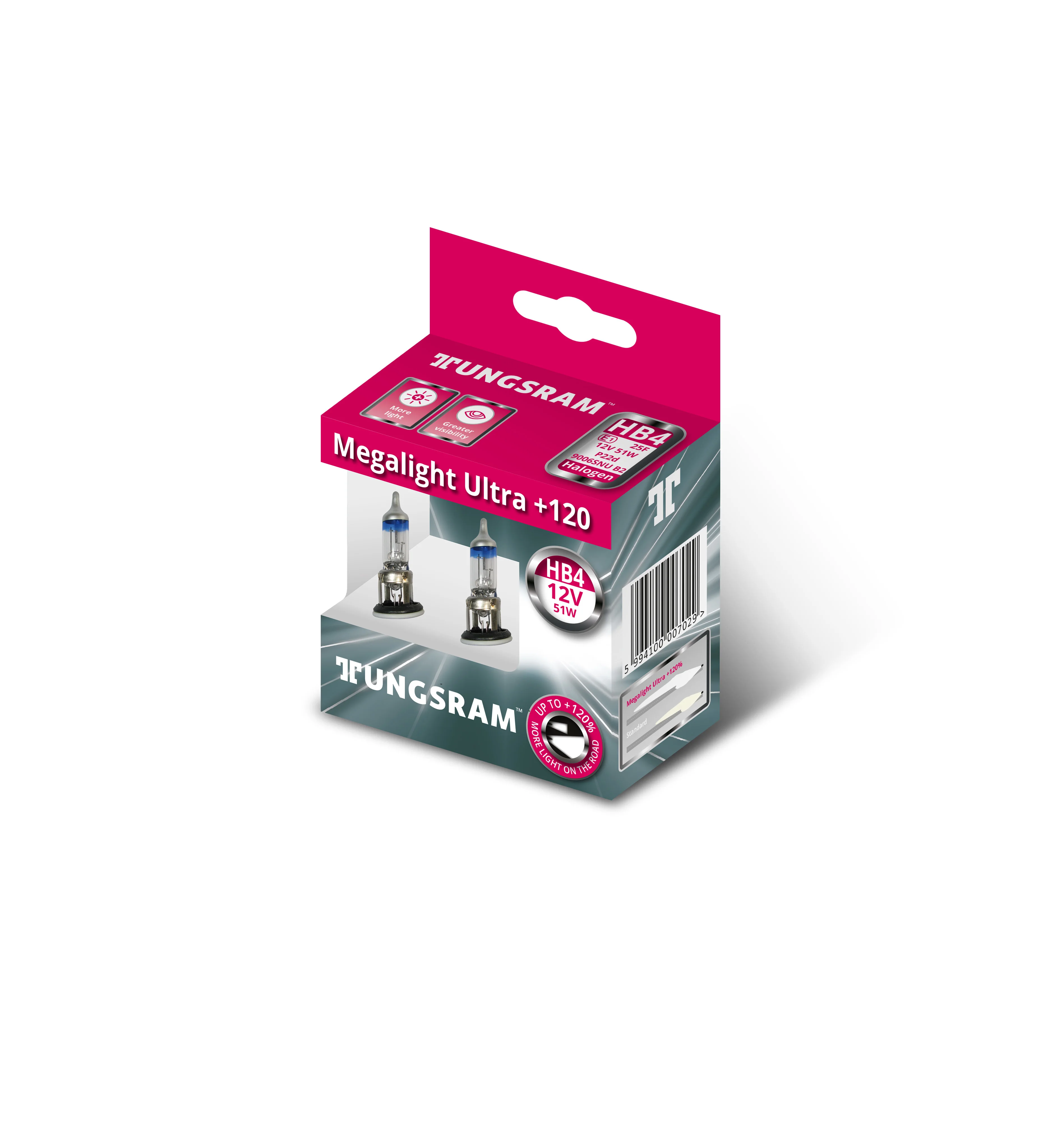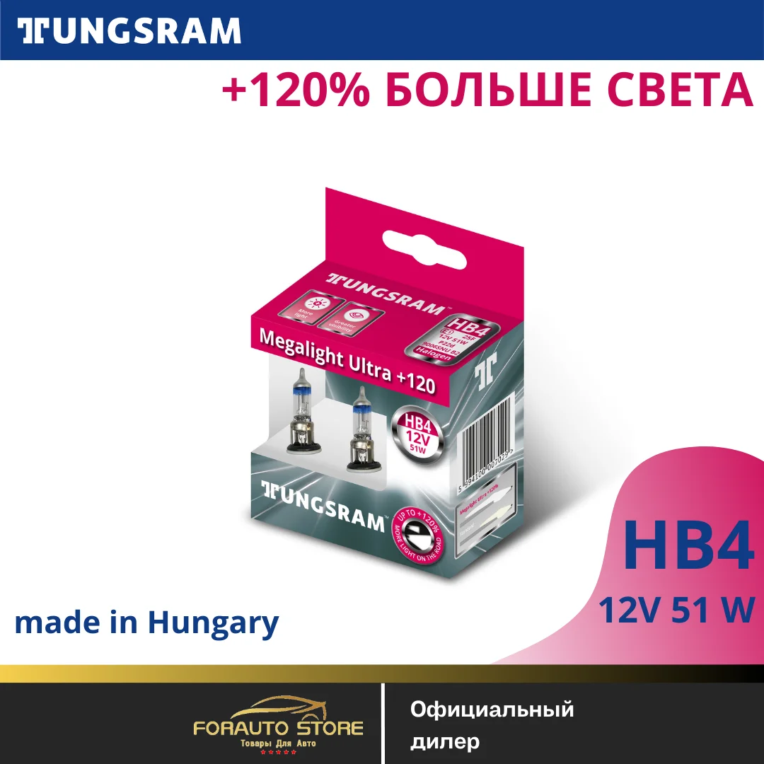 Галогенная лампа HB4 12V-51W (P22d) Megalight Ultra +120 (уп.2шт.) TUNGSRAM 9006SNU-B2