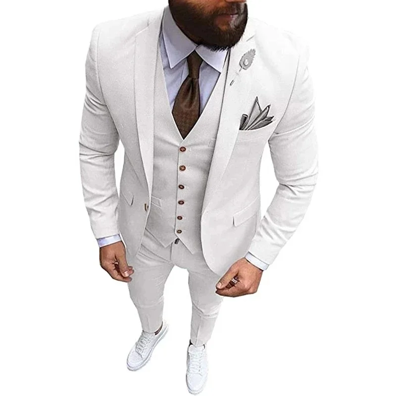 Костюм мужской облегающий из трех предметов, белый пиджак, жилет, б...
