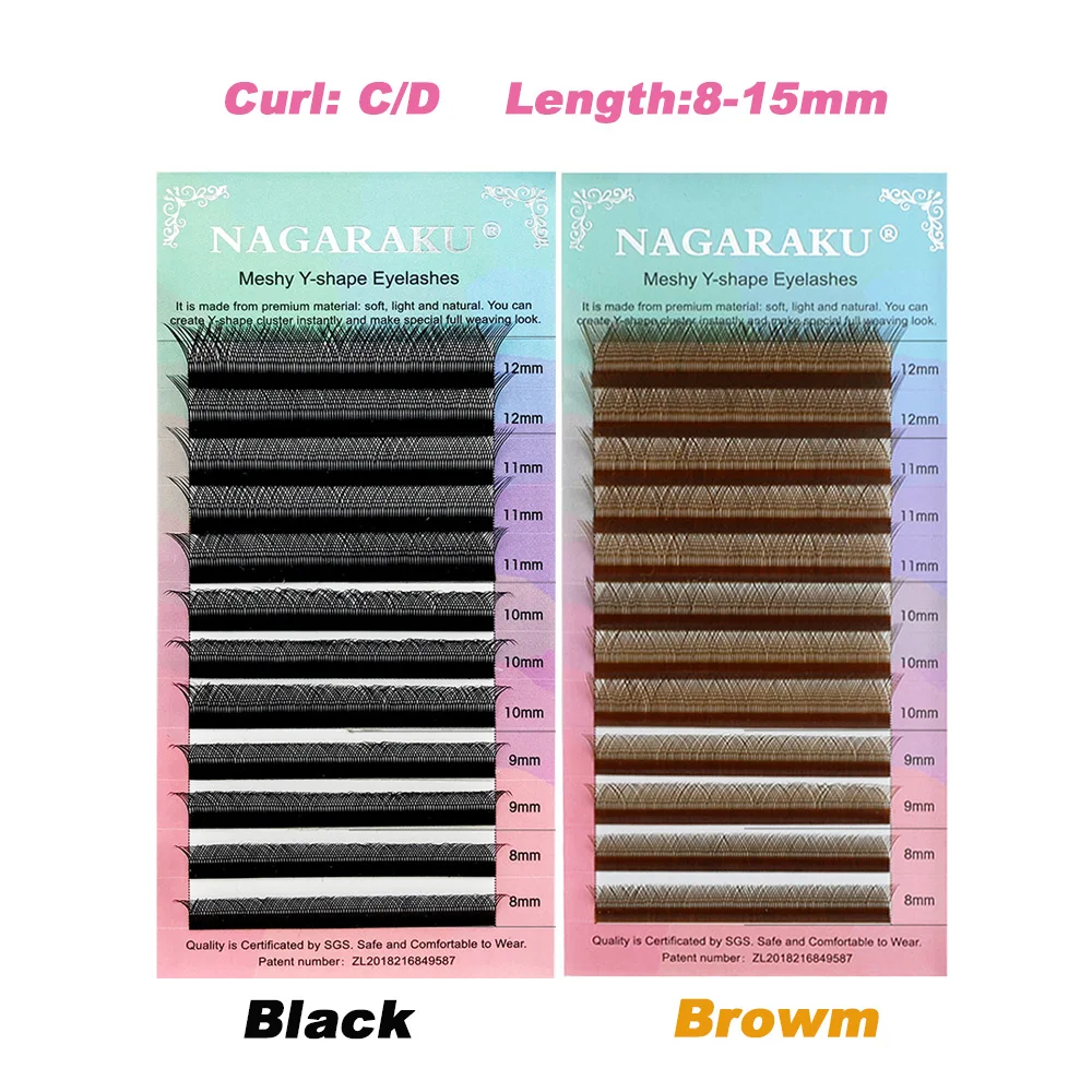 NAGARAKU YY-форма 8-15 мм BCD смешанные изгибы черные и коричневые ресницы для наращивания двухсторонние ресницы Объемные ресницы высокое качество