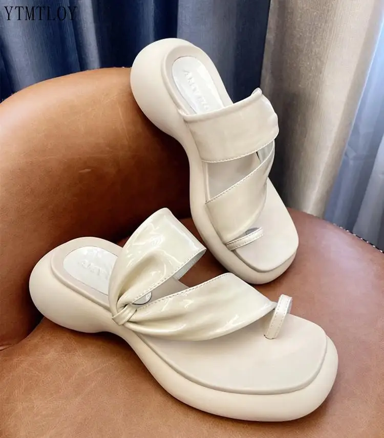 Сандалии женские на массивной платформе, брендовые дизайнерские Элегантные пляжные тапочки с мягкой подошвой, шлепанцы для дома, лето 2021