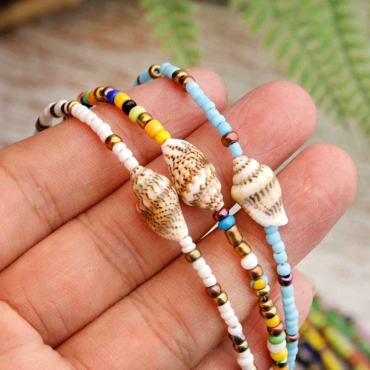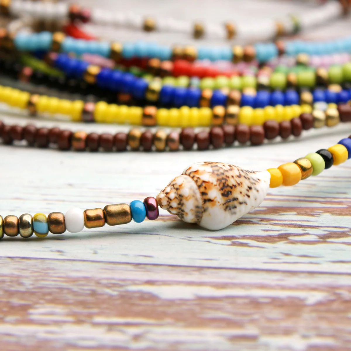 Женское винтажное ожерелье из акриловых бусин, ожерелье ручной работы с цветными бусинами, ожерелье-чокер в богемном стиле с натуральными ракушками, летняя бижутерия