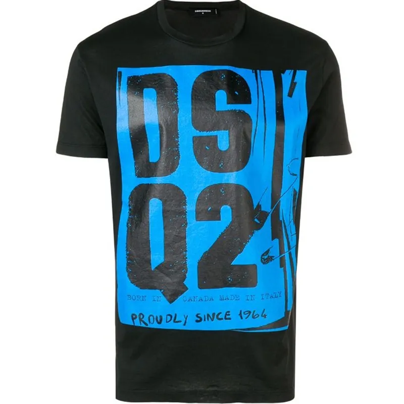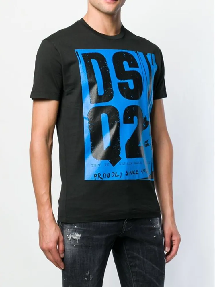 Мужская футболка с коротким рукавом DSQ2, летняя повседневная футболка с ручной росписью тушью, с круглым вырезом, спортивные футболки
