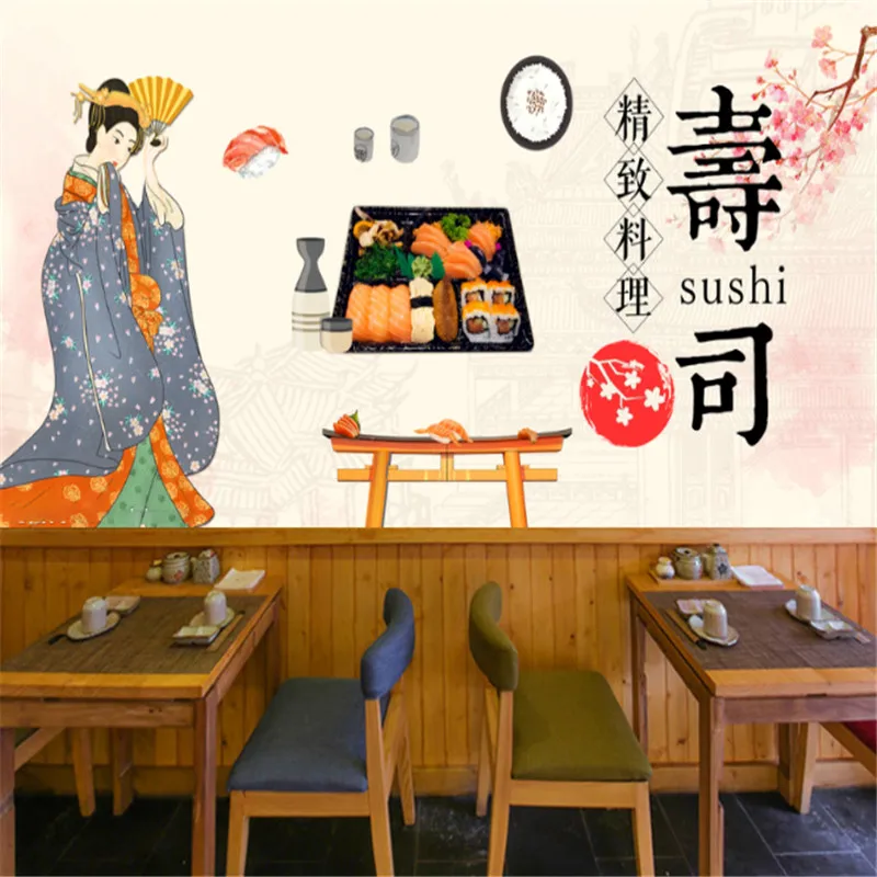 Японская культура кимоно обои s промышленный Декор Леди суши для гурманов Ресторан фон настенная бумага Papel де Parede Дисплей продукта: