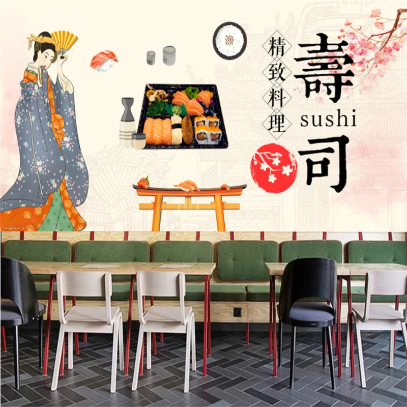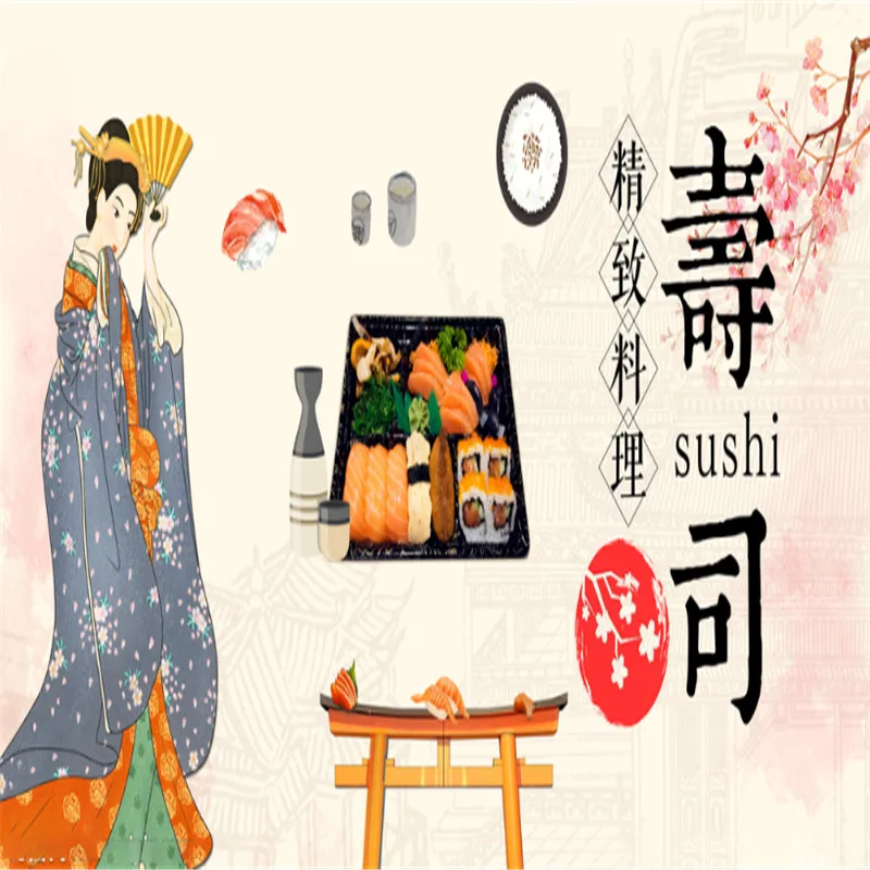 Ручная роспись Япония Знаменитые Достопримечательности настенная бумага 3D кимоно красота японская кухня суши Ресторан промышленный Декор настенная бумага