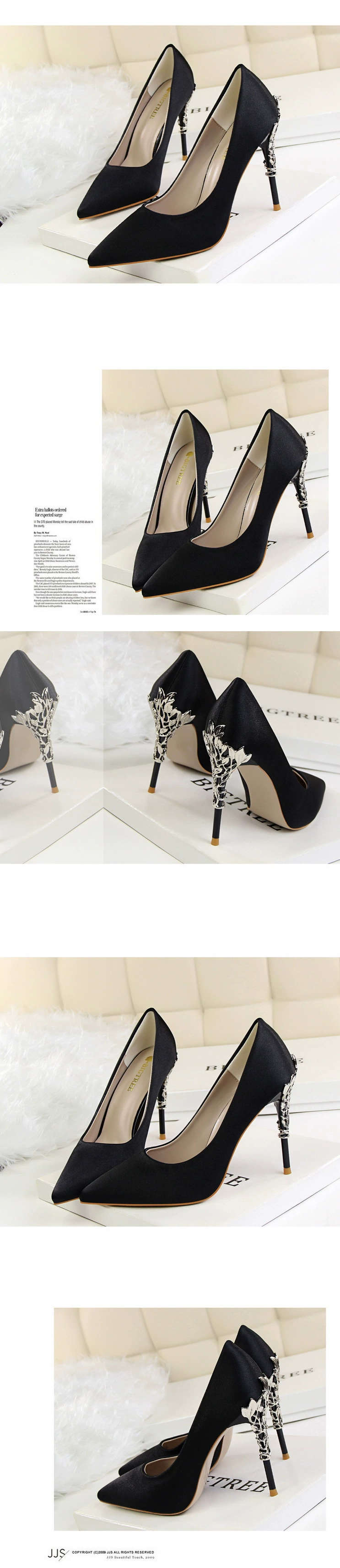 Элегантные женские туфли-лодочки на резном металлическом каблуке, 2...