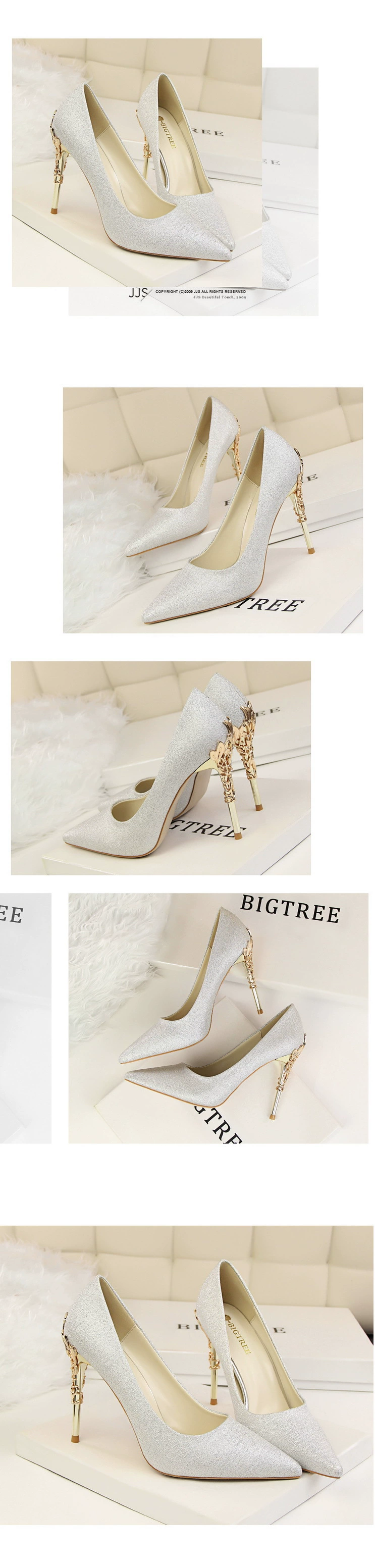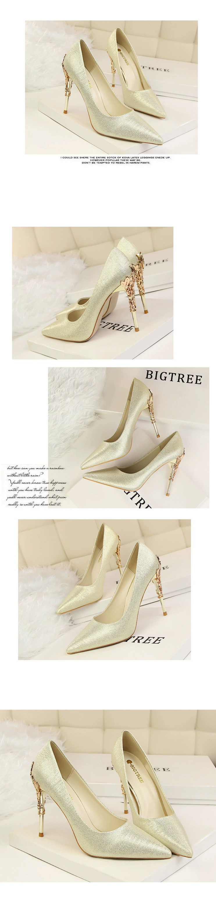 BIGTREEженские туфли-лодочки на металлическом каблуке с резным узор...