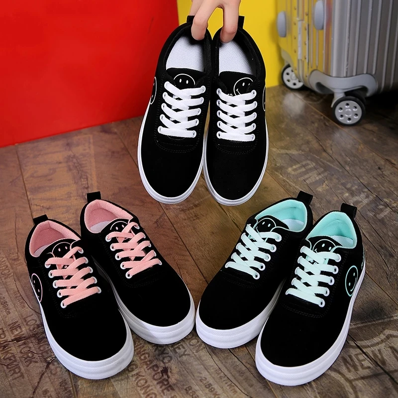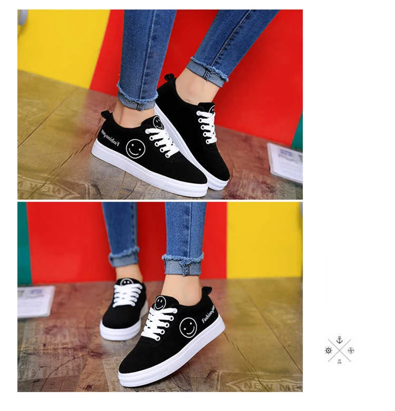 Кеды женские парусиновые, классические кроссовки на шнуровке, плоская подошва, со смайликом, прогулочная обувь, Размеры 35-39, летоосень