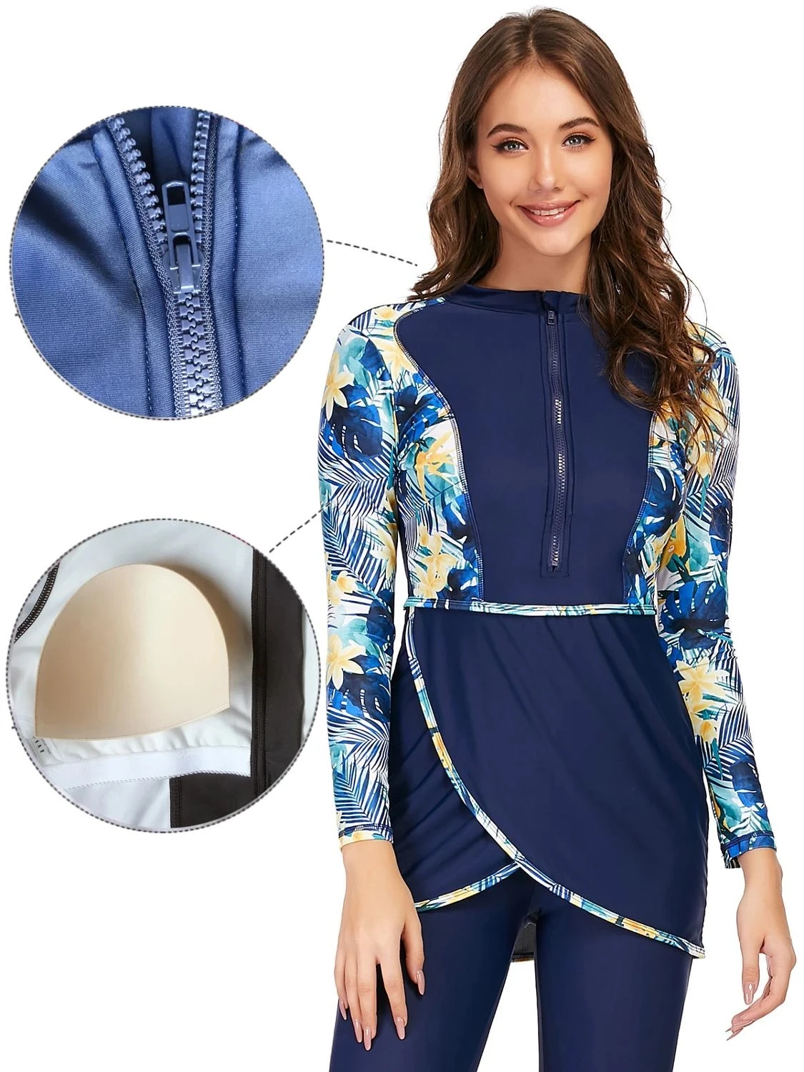 Мусульманский купальник, женский купальный костюм, скромный лоскутный спортивный купальник хиджаба, длинный рукав, 3 предмета, Исламская одежда Буркини, женская одежда 3XL