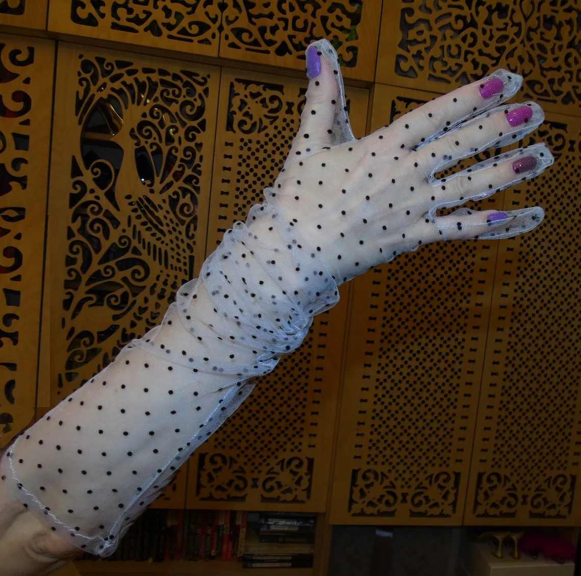 1 пара, женские короткие тюлевые перчатки в горошек, 60 см