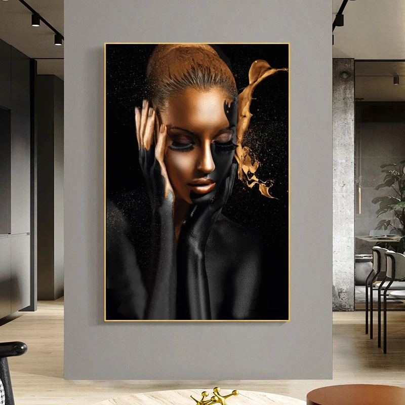 Картина маслом на холсте с изображением Африканской женщины черного золота телесного цвета, постеры с изображением куадроса, Скандинавская Настенная картина для гостиной