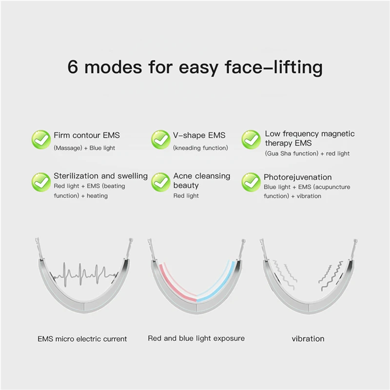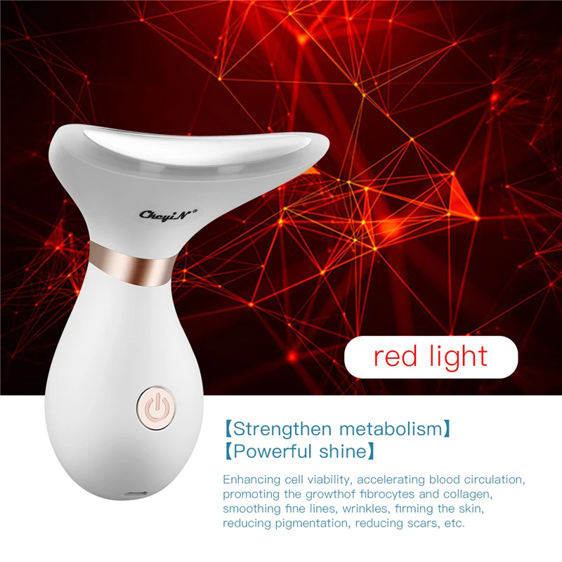 Особенности:1. Обтекаемая Массажная головка специально разработана для шеи, которая является эргономичной и передает энергию на каждый дюйм кожи на шее. Массажная головка нагревается при 45 °C для полировки кожи с тремя цветными режимами света: низкий, средний и высокий, чтобы достичь эффекта украшения кожи и шеи