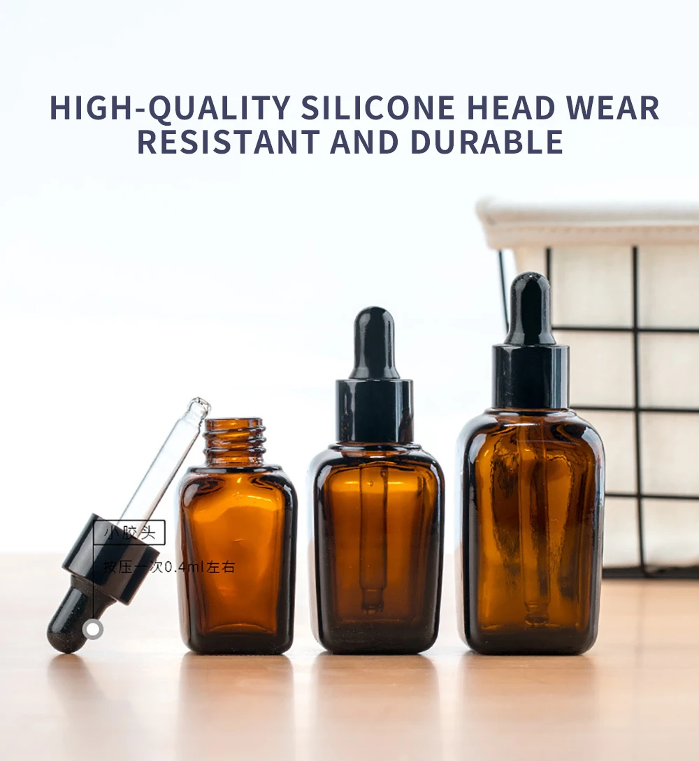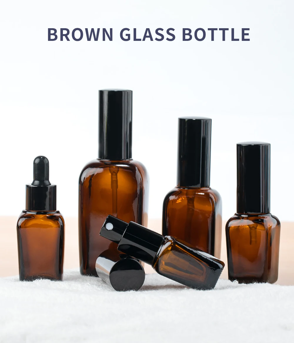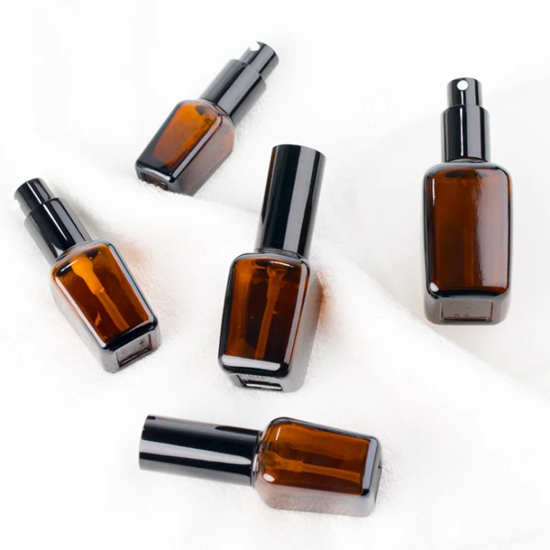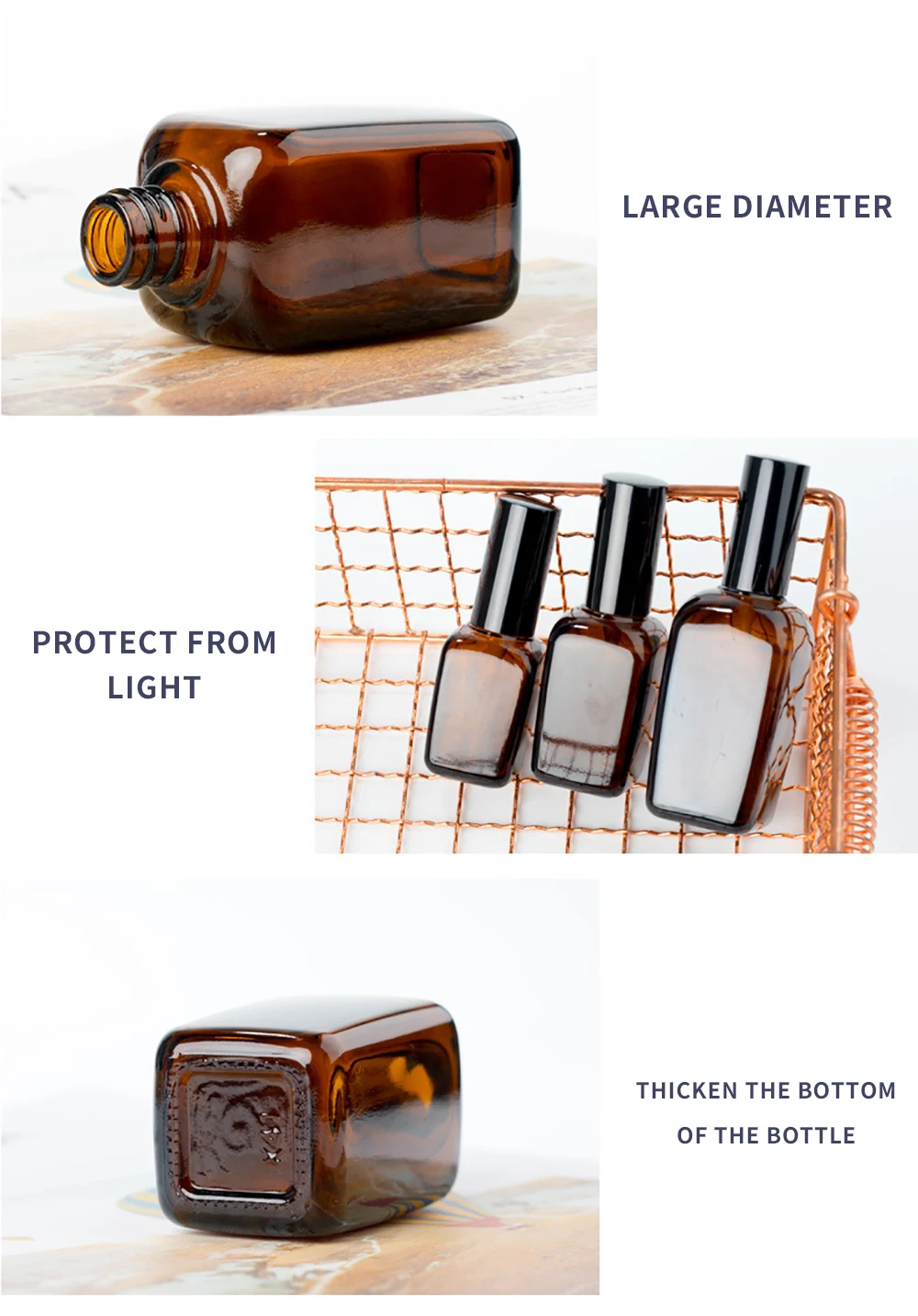 Флакон для лосьона с квадратным толстым дном и янтарным стеклом, 10 мл20 мл30 мл, с возможностью нанесения логотипа на заказ