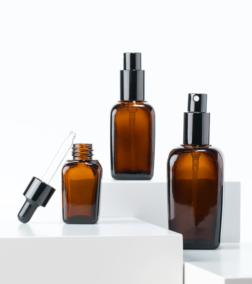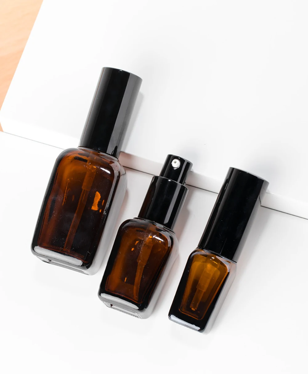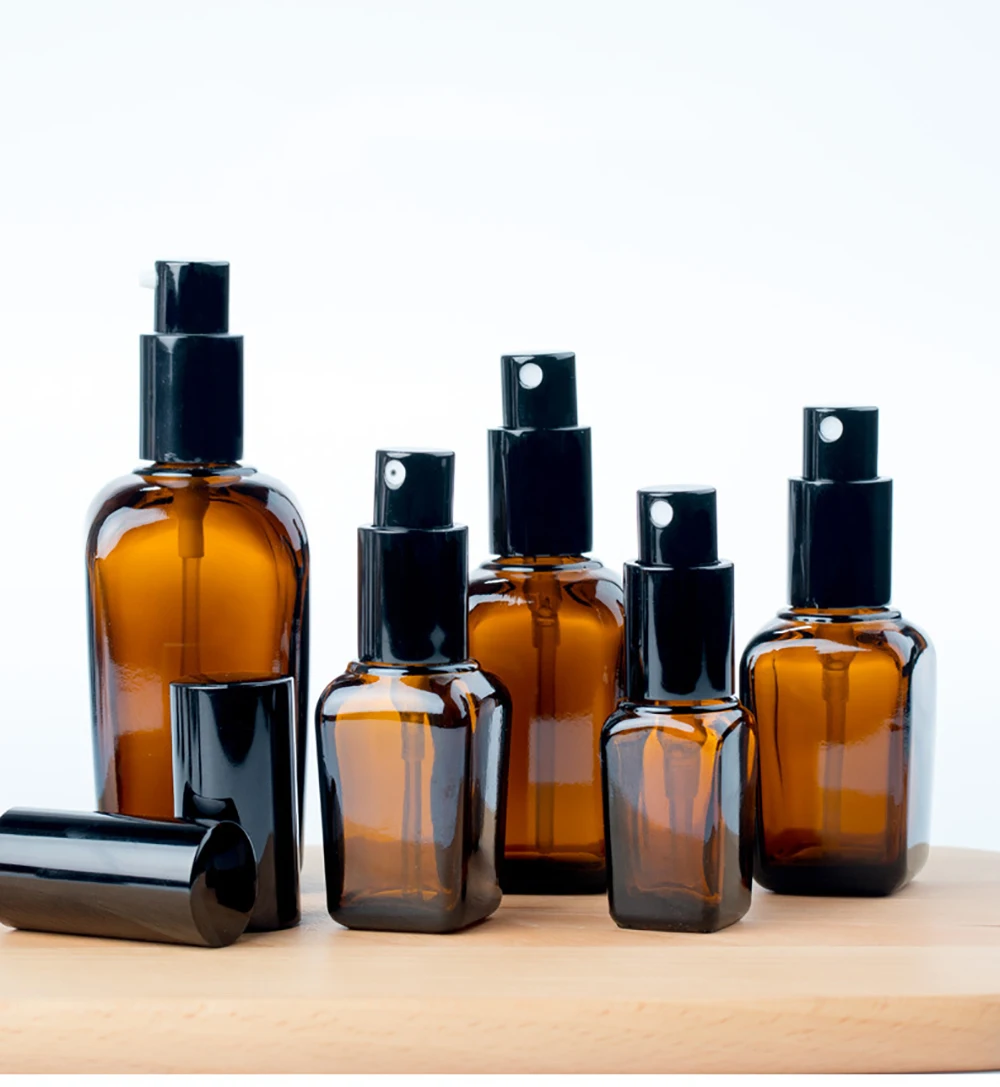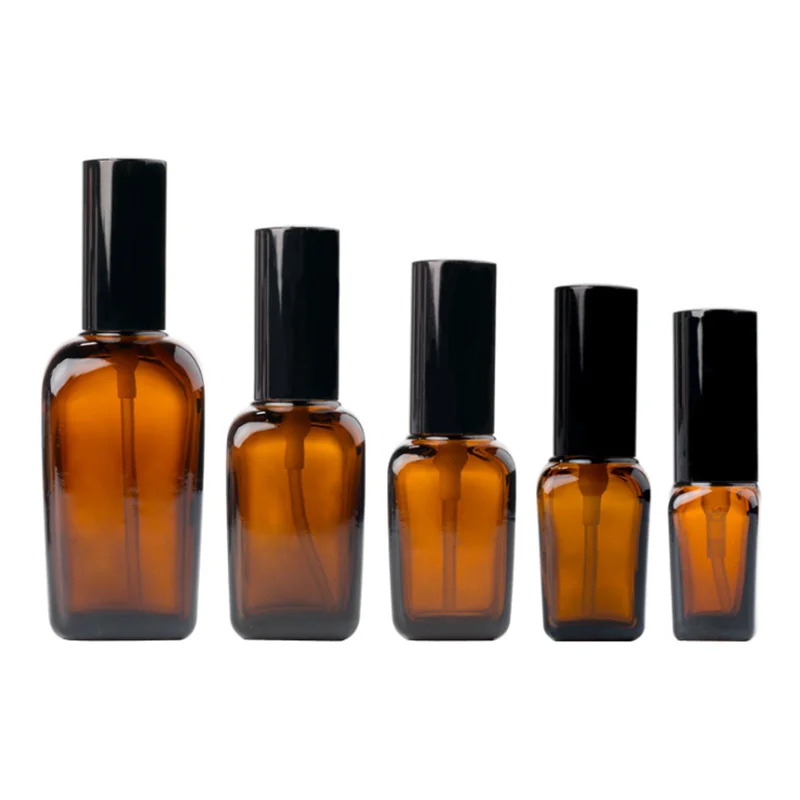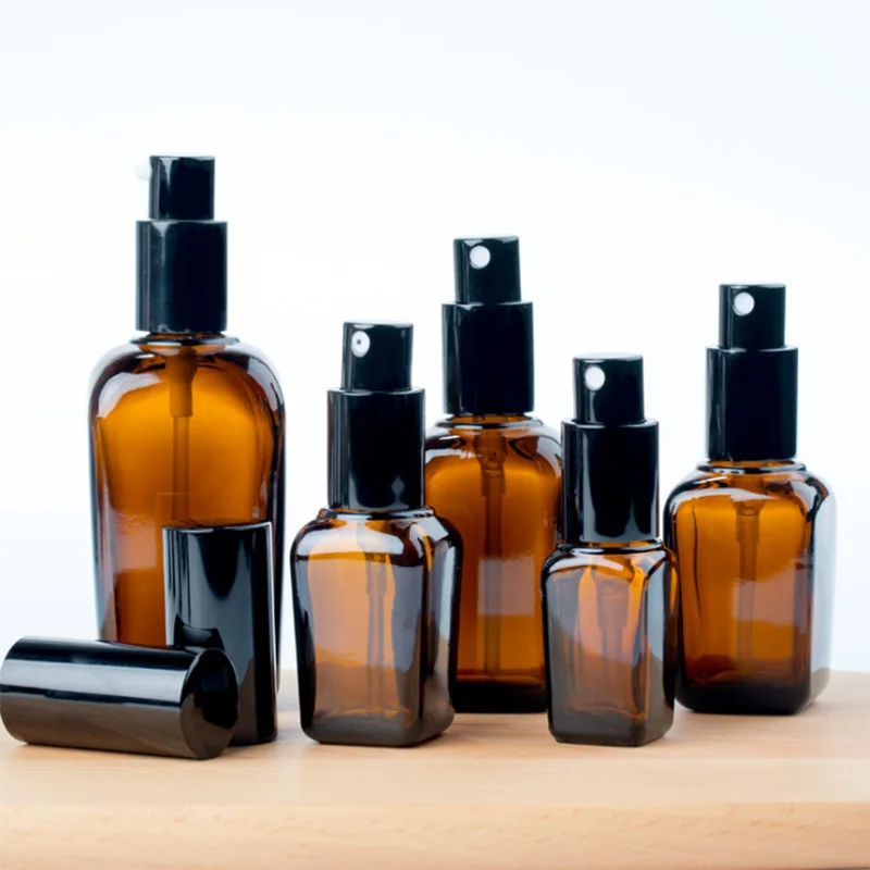 Флакон для лосьона с квадратным толстым дном и янтарным стеклом, 10 мл20 мл30 мл, с возможностью нанесения логотипа на заказ
