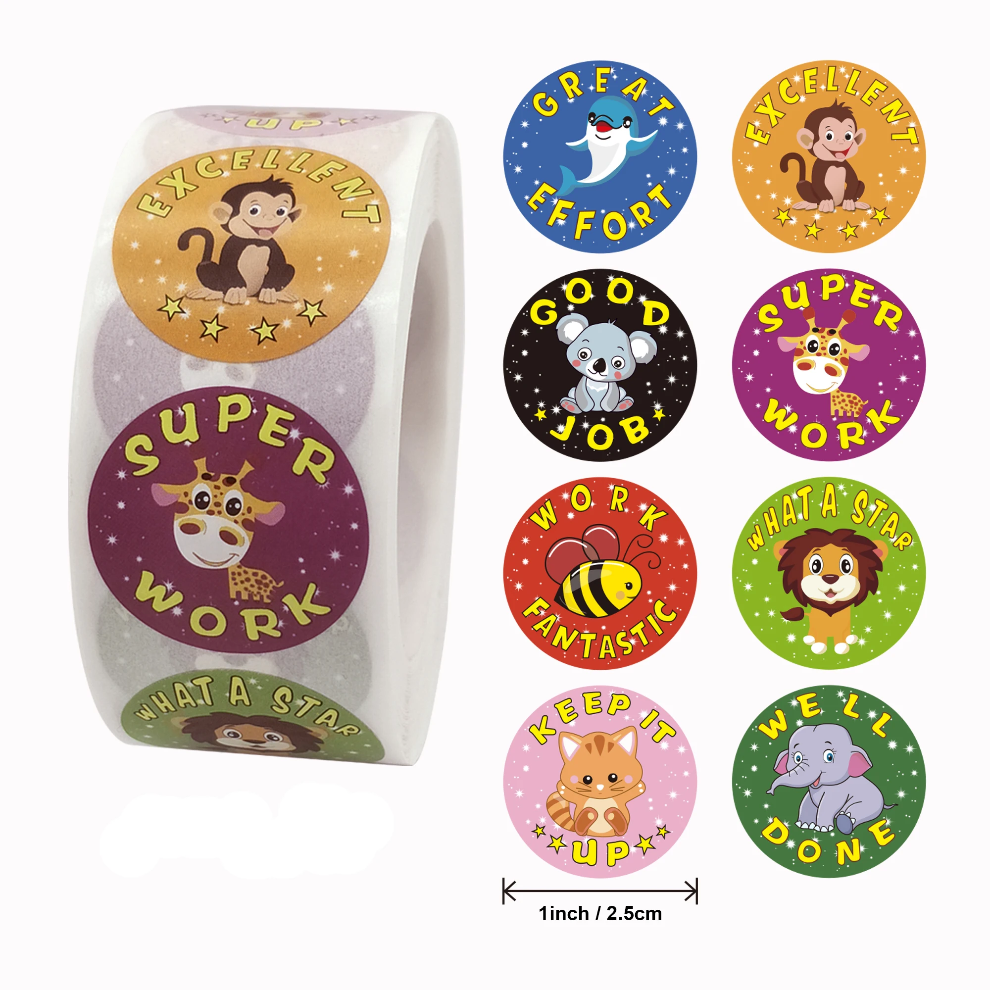 Наклейки для детей, 50 шт., 1 дюйм, с милыми животными
