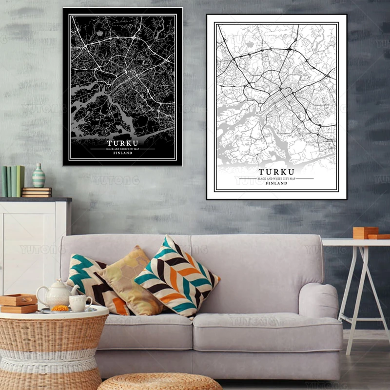 TURKU черно-белый фотоплакат с рисунком в скандинавском стиле для гостиной настенные картины Домашний декор холст картина в рамке